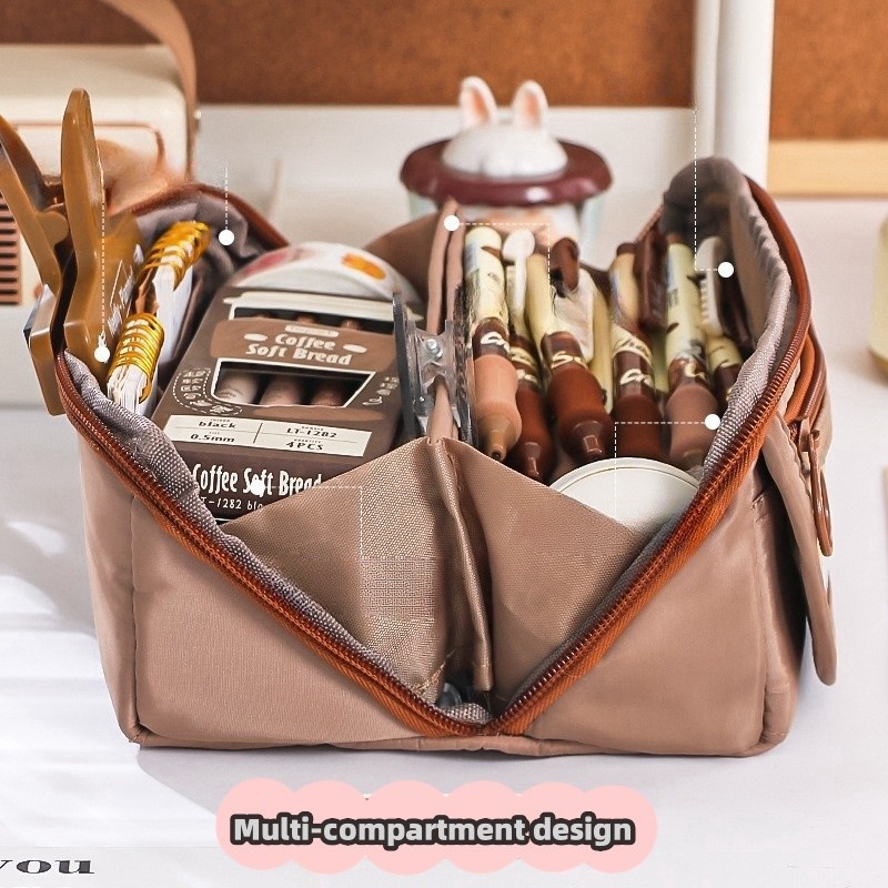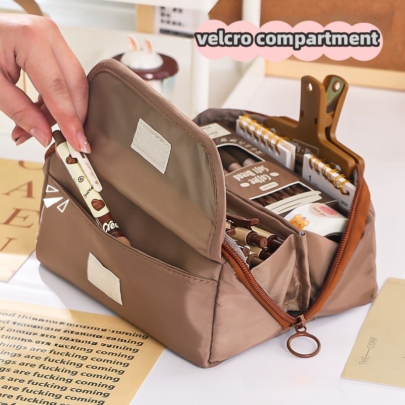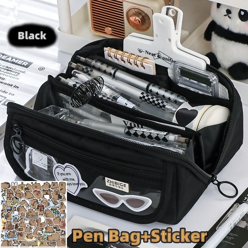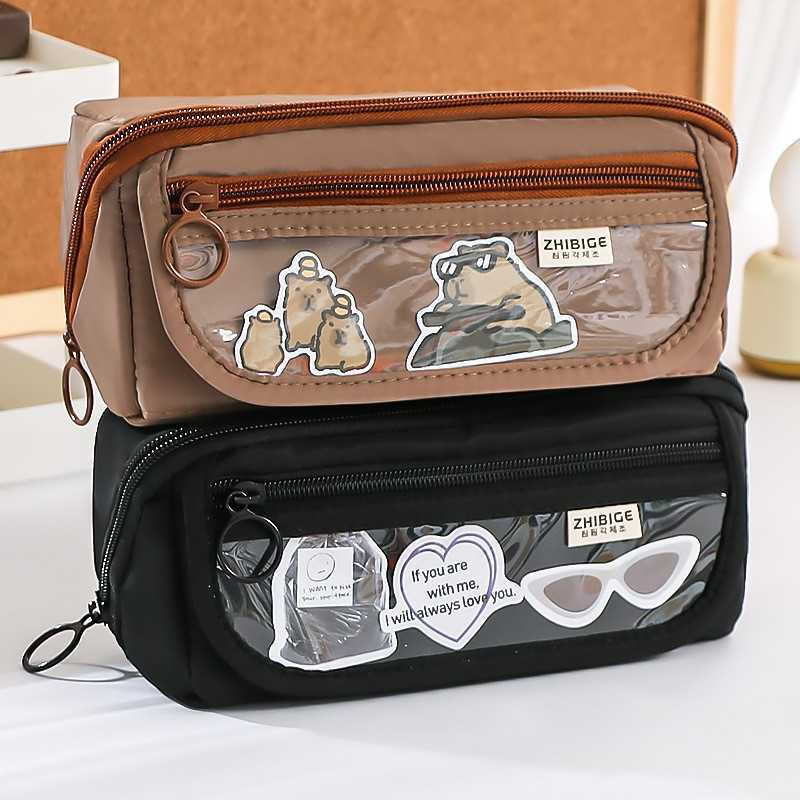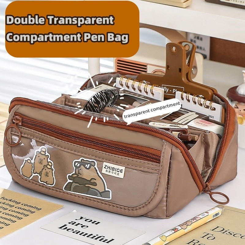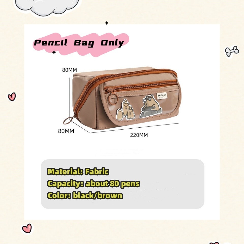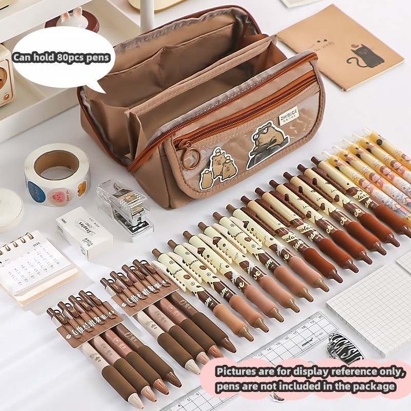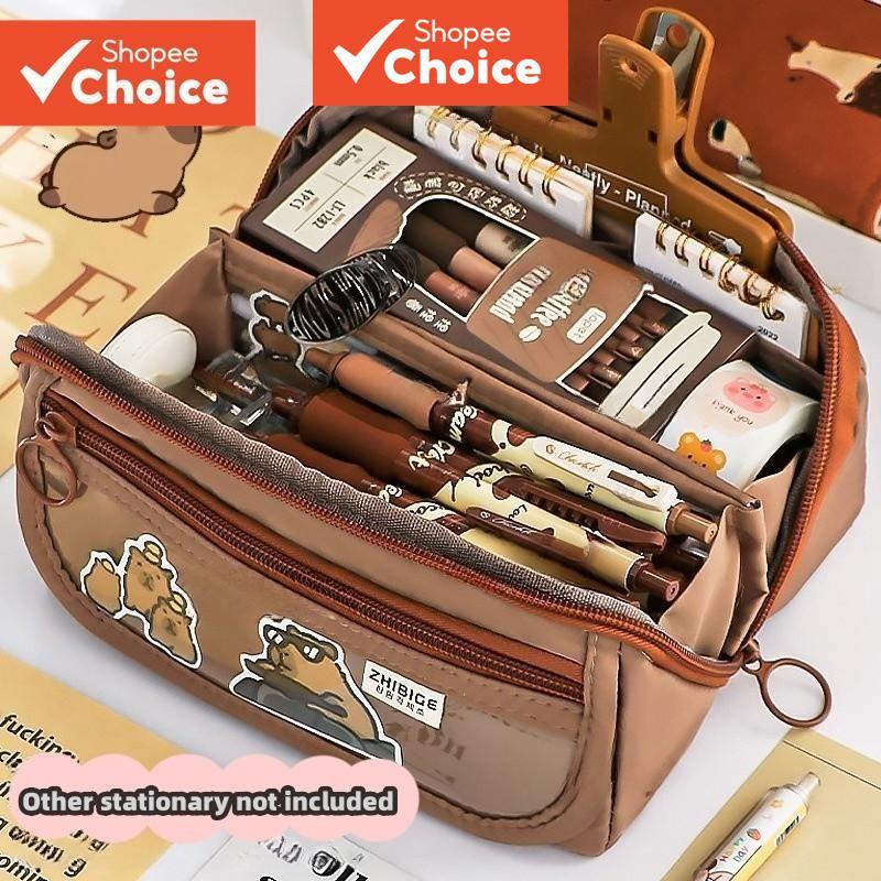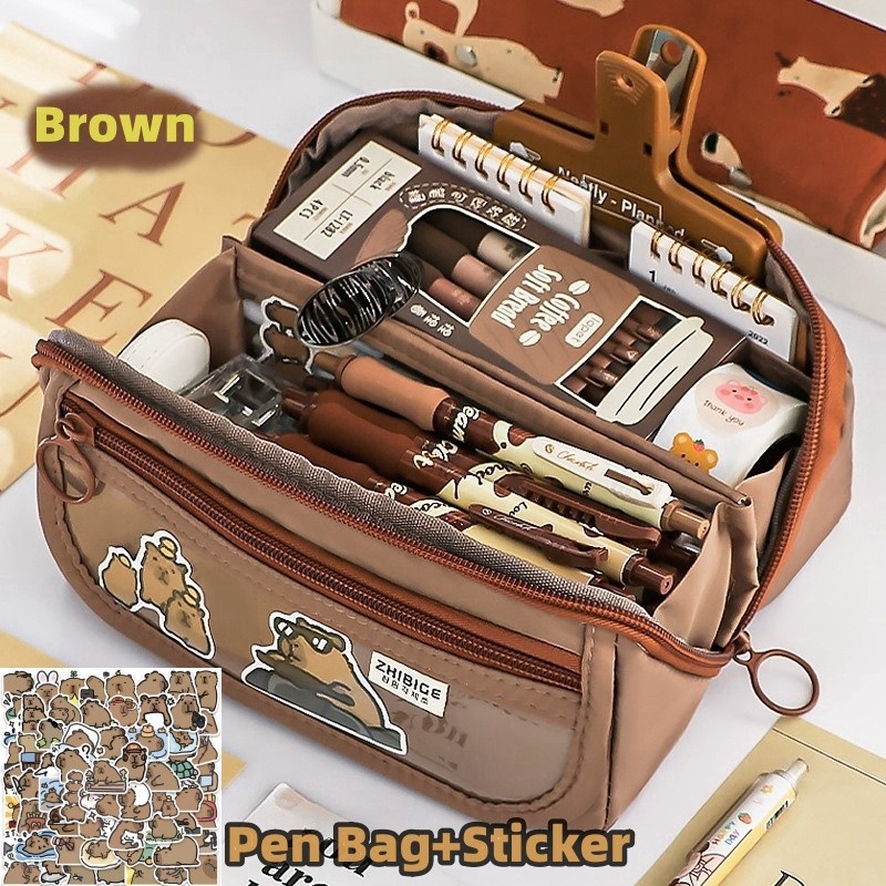 9 Layers Cute Capybara Pencil Bag with 50pcs Stickers Large Capacity Pencil Case High-value Cartoon Pen Box Stationery Supplies Storage Bag