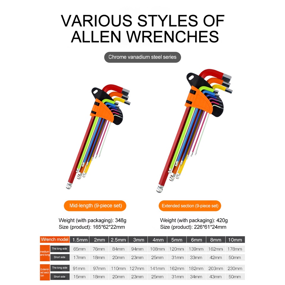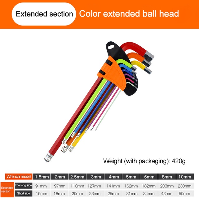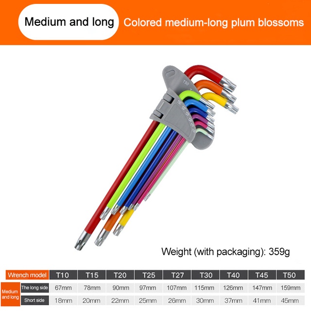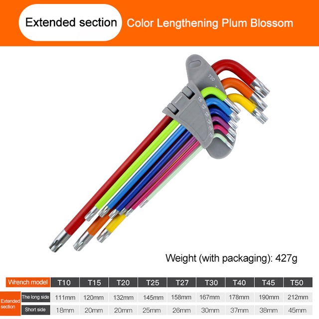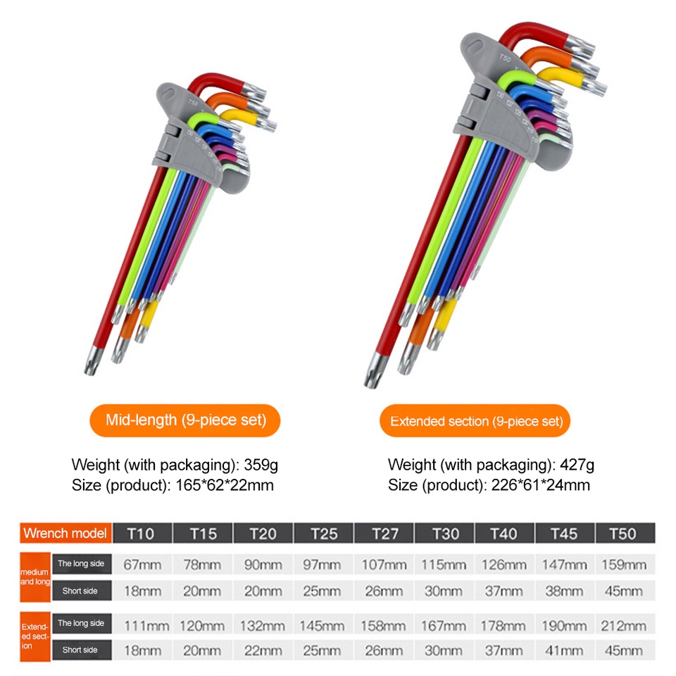 9 Pcs Allen Key Set Ball End Torx Star Keys L-Type Allen Wrench Inner Hexagon Spanner Universal Multicolour Long Metric Wrench