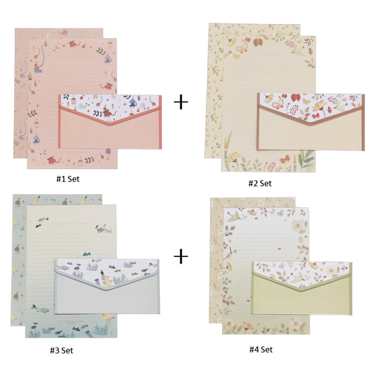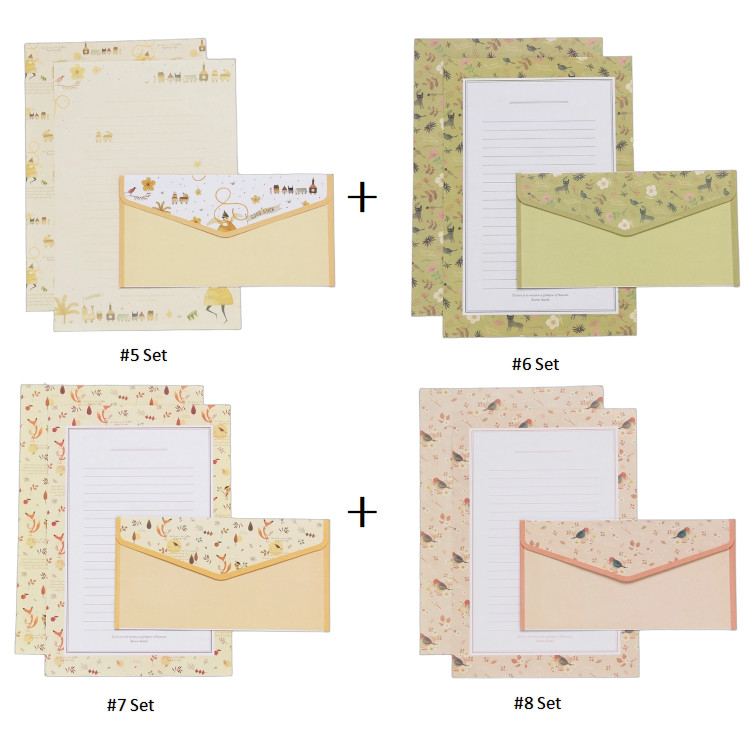1 /4 Set 9 Pcs Creative Japanese Letter Paper Envelope Set Simple Romantic Retro Envelope A5