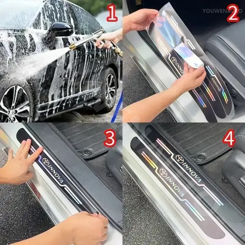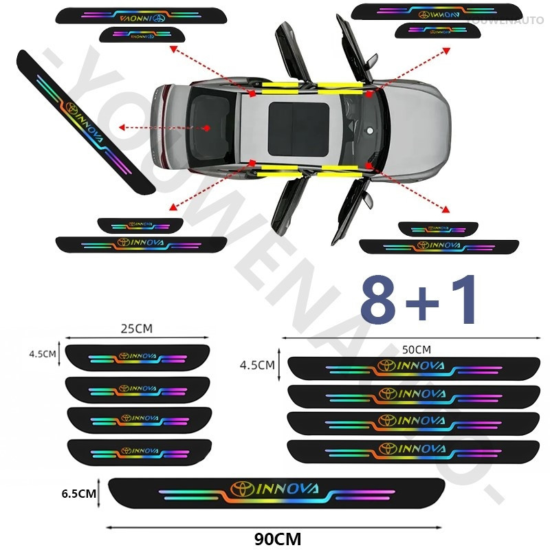 9 Pcs For Toyota Innova zenix Laser Car Door Sill Strips Protector Rear Bumper Protector Accessories
