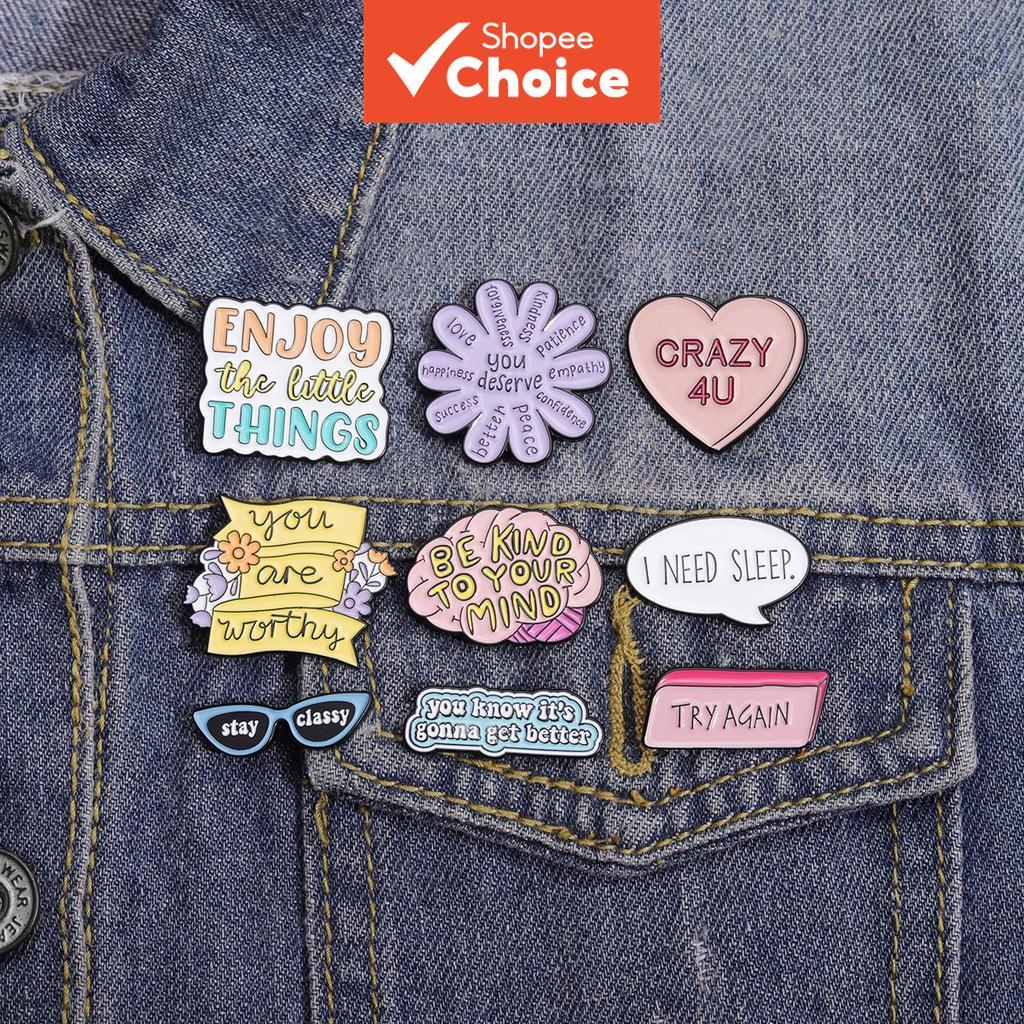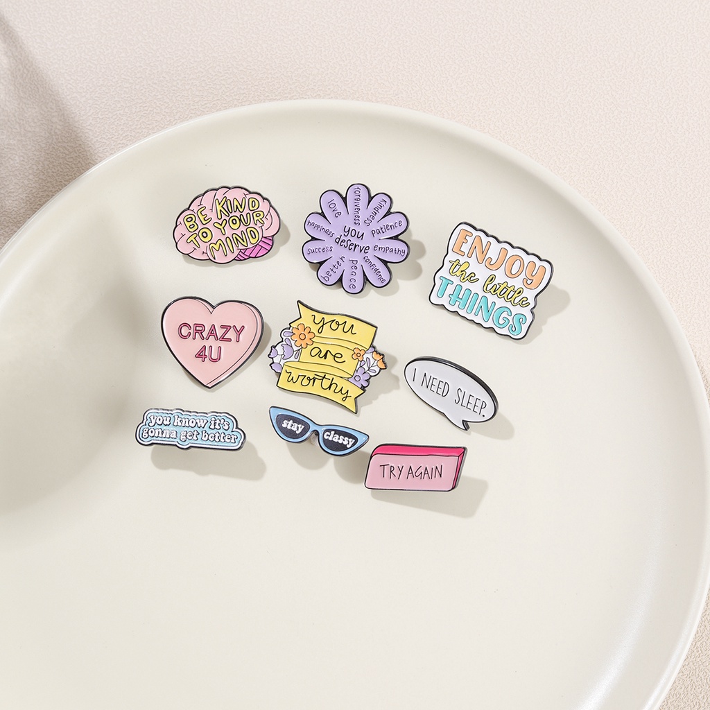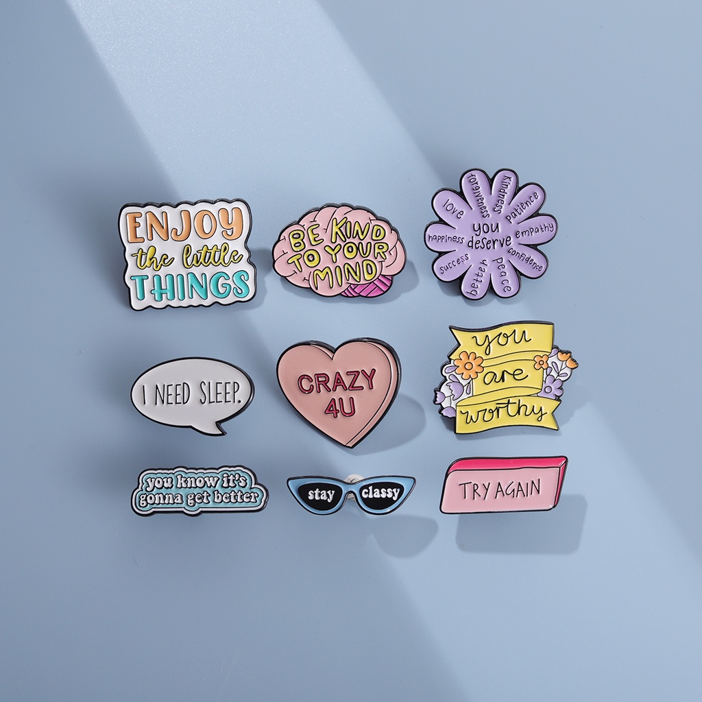 9 Styles Thinking Phrases Lapel Pins Stay Classy Brooch Enjoy The Little Things Backpack Badge Gifts for Friends Clothing Accessories