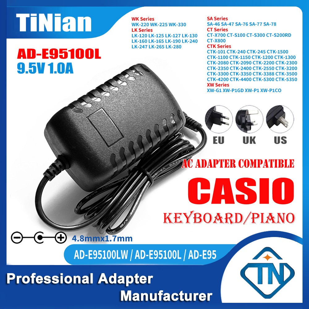 9.5V 1A AD-E95100L Power Supply AC/DC Adapter for Casio CTK-3200 CTK-3300 CTK-3350 CTK-3388 CTK-3400SK CTK-3500 Keyboard Electronic Piano