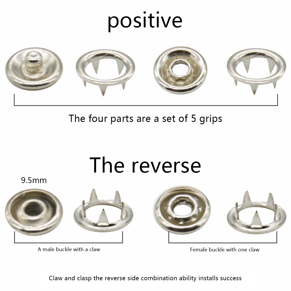9.5mm Metal Sewing Prong Rings Snap Button Pliers Fastener Stud Button Fixing Tool Sewing Craft Kit DIY Installing Clothes Jeans Bag Clip