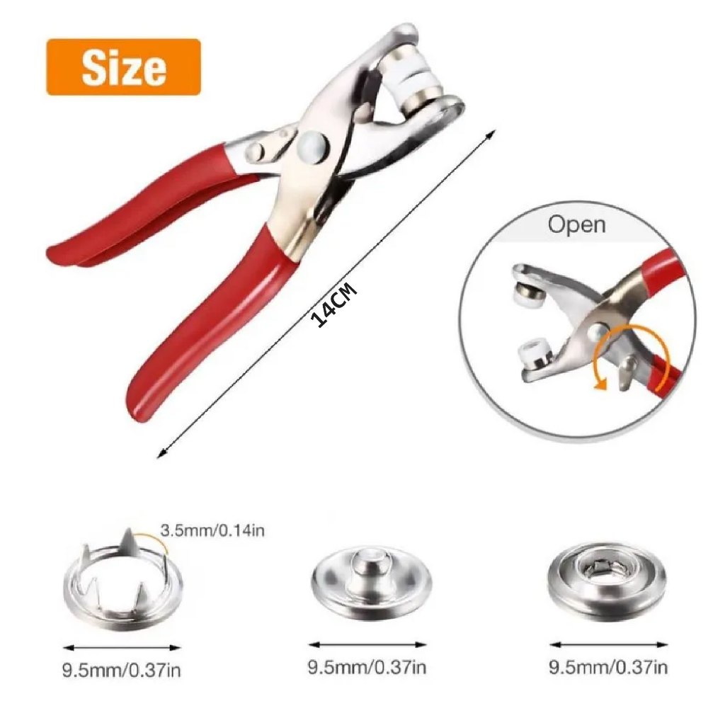 9.5mm Metal Snap Button Tool Kit DIY 100 Set With Fastener Pliers Press Tool Kit For Clothing Sewing