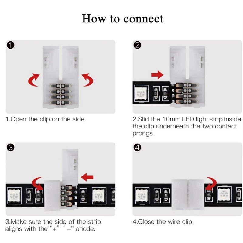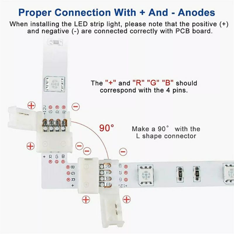 90 degree right angle clamp for RGB led lights, 4 pin quick LED connector, LED Jack, 4 pin LED coupling