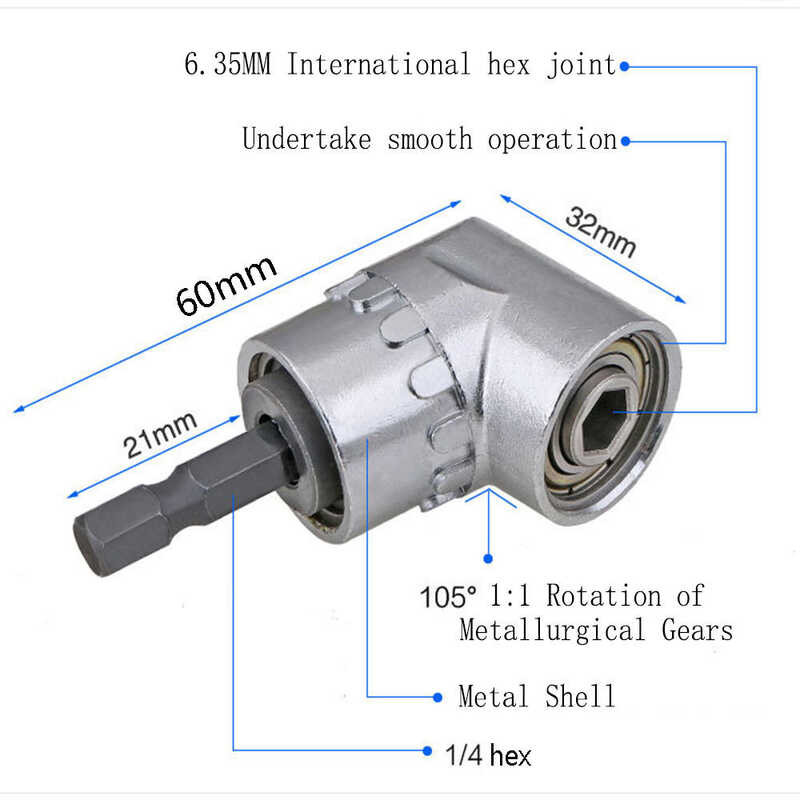 90 Degree Right Angle Drill Bit Corner Adapter Narrow Space Drilling Screwdriver Labor-saving E