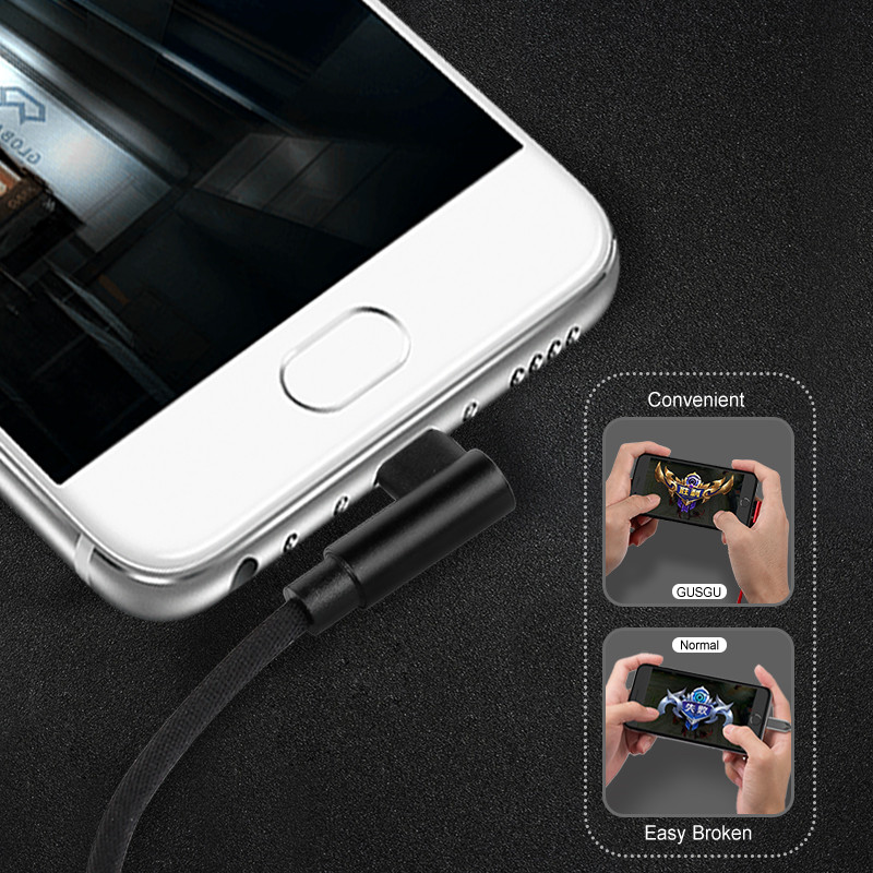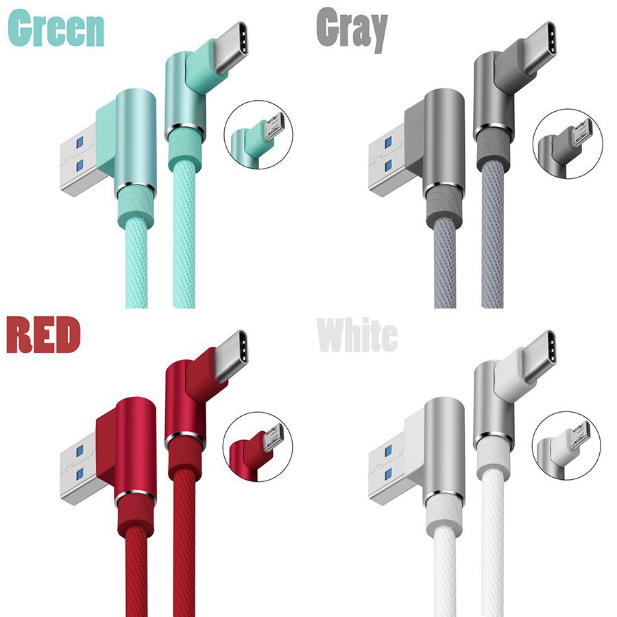 90 Degree Right Angle Fast Charging Data Cable Game Charger Cable Phone i Micro USB Type C Cables