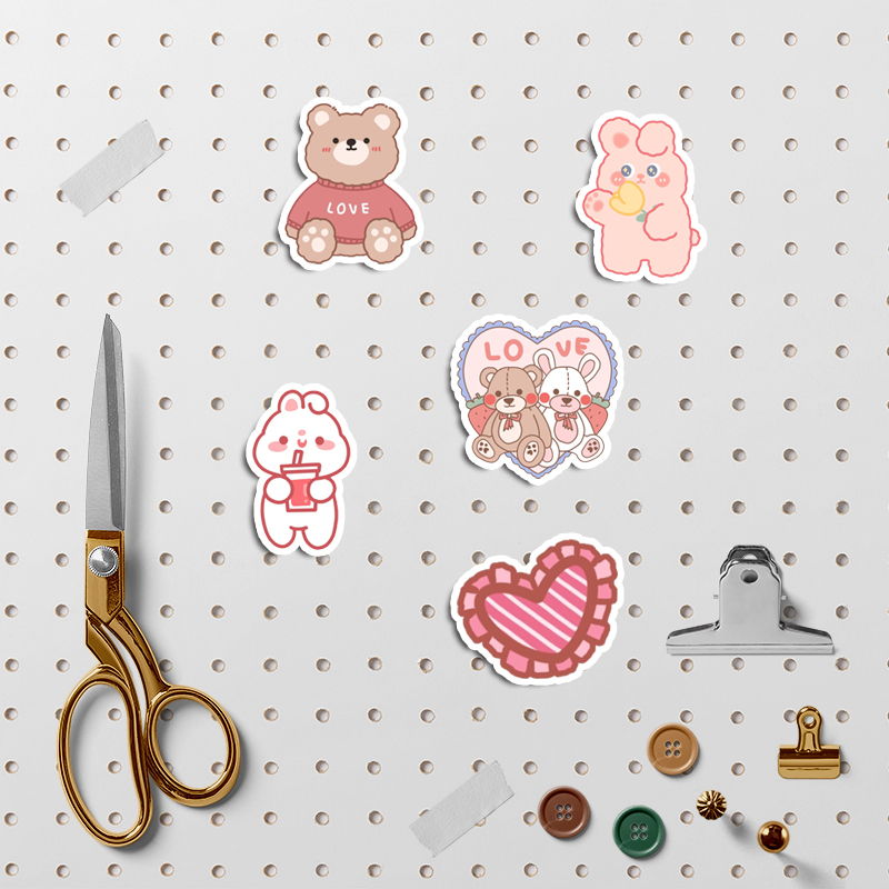 90pcs Cute Pink Peach Bear Stickers Diy Computer Washi Scrapbooking Stickers Student Stationery Arts Crafts