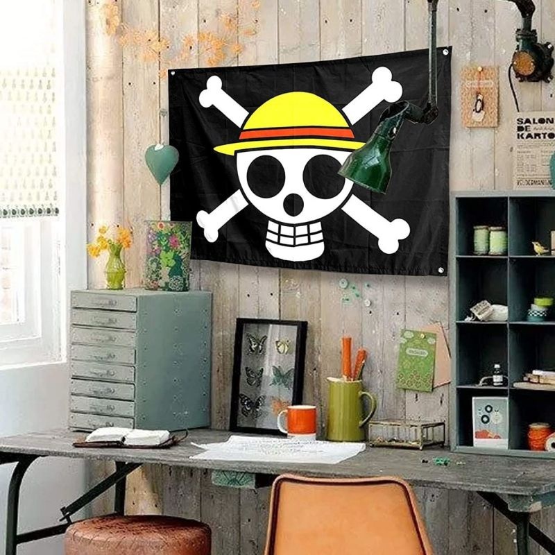 90x60cm One Piece Luffy Flag Polyester Straw Hat Pirate Flag Jolly Roger Pirate Flag One Piece Flag