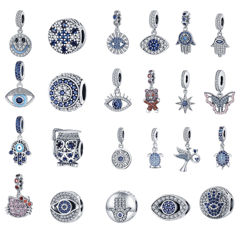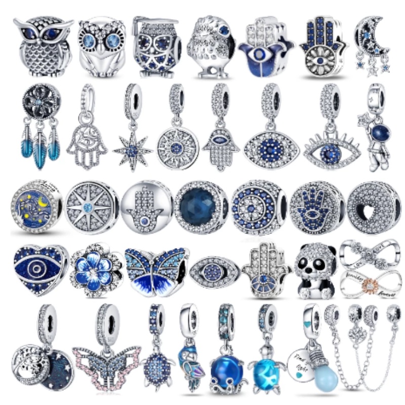 925 Original Silver Evil Eye Charm Owl Blue Hot Air Balloon For Bracelet DIY Make Jewelry Gift Devil Eye