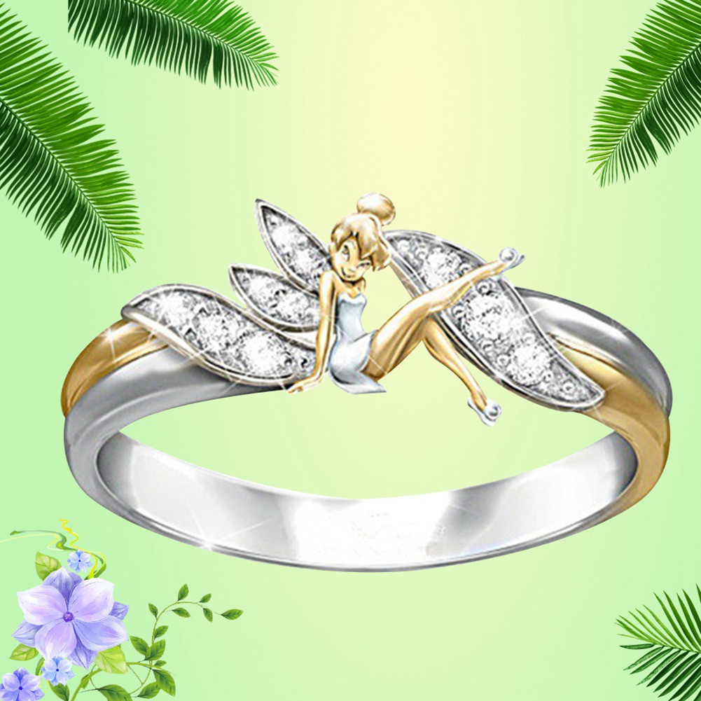925 Sterling Silver Angel Ring Wedding Band Engagement Ring Cubic Zirconia Diamond