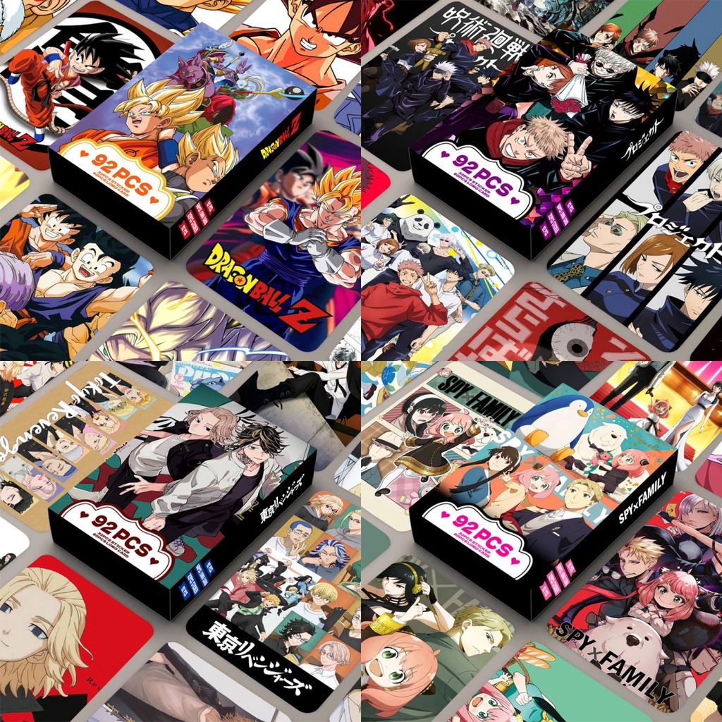 92pcs/box ONE PIECE Dragon Ball HARUTO SPY FAMILY Stickers Photocards Tokyo Revengers Jujutsu Kaisen Lomo Cards Blue Lock Chainsaw Man Demon Slayer Postcards On Sale JY