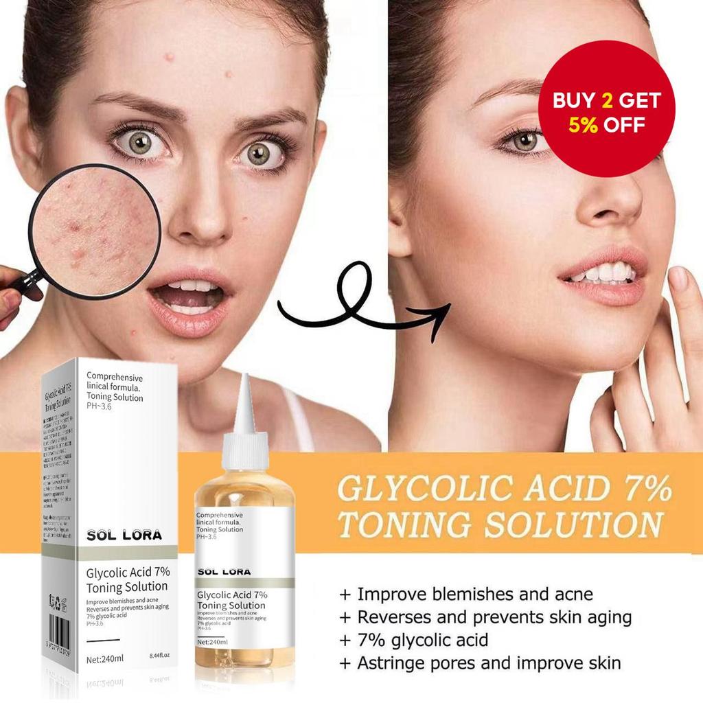 Glycolic Acid 7% Exfoliating Toner – Acne Treatment, Skin Hydration & Gentle Rejuvenation Lotion Hydrosols