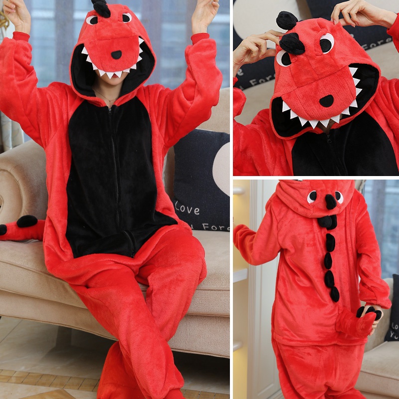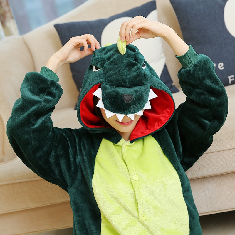 Autumn Winter Women Men Unisex Adults Cute Cartoon Onesies Kids Animal Pajamas Blue Dinosaur Flannel Pyjamas Sleepwear