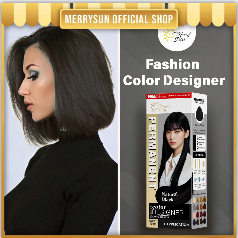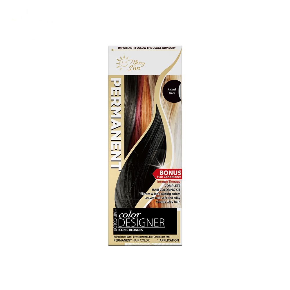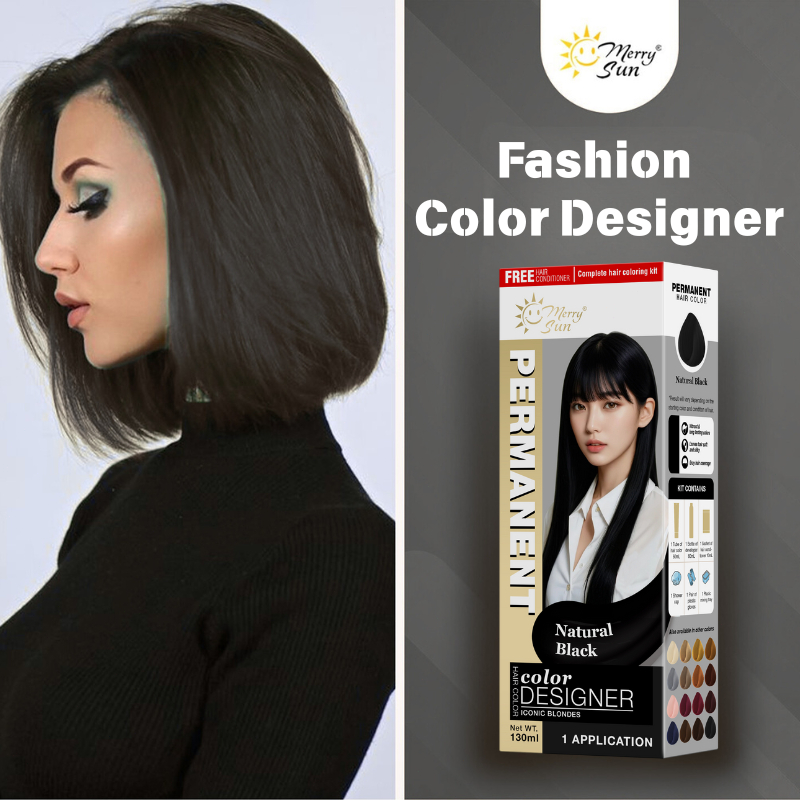 Merry Sun Permanent Hair Color/dye Cream for Salon (Natural Black), Plant Based Formula, DIY at Home