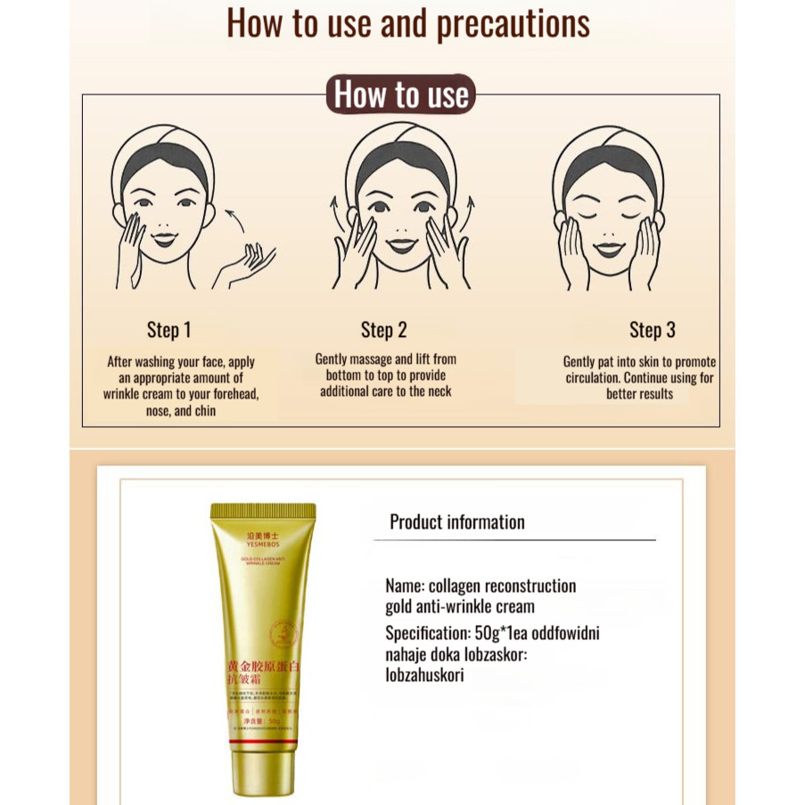 【Visible Results in 7 Days】Dr. Yanmei Gold Collagen Anti-Wrinkle Cream Anti-Aging Face Cream/Wrinkle Reduction/Gold Collagen/Moisturizing Firming Skin Care