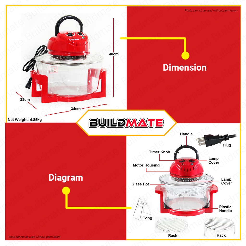 HANABISHI Multi Functional Turbo Broiler Air Fryer Convection 1300W Turbo Oven HTB-128 •BUILDMATE•