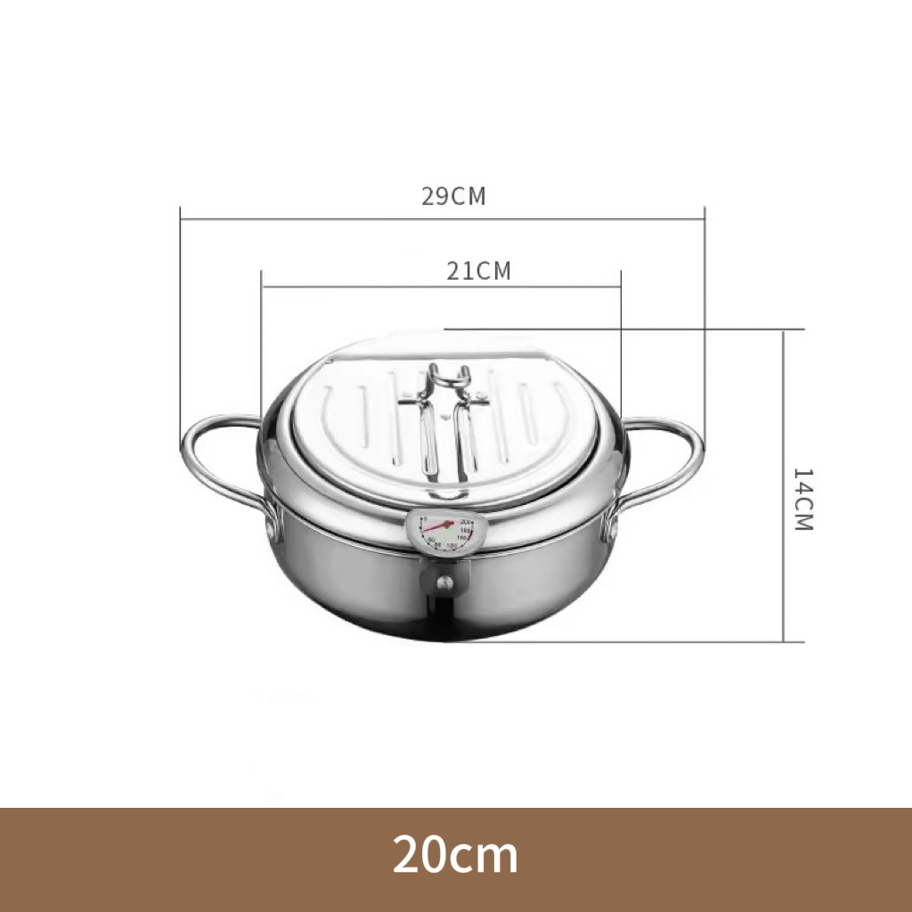 BEST Japanese Style 304 Stainless Steel 20/24CM Deep Fryer Pot with Thermometer COD