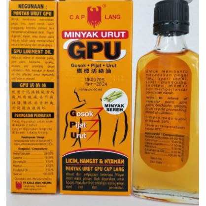 Cap Lang GPU Minyak Urut Minyak Sereh 60ml Indonesia Essential Massage Oil