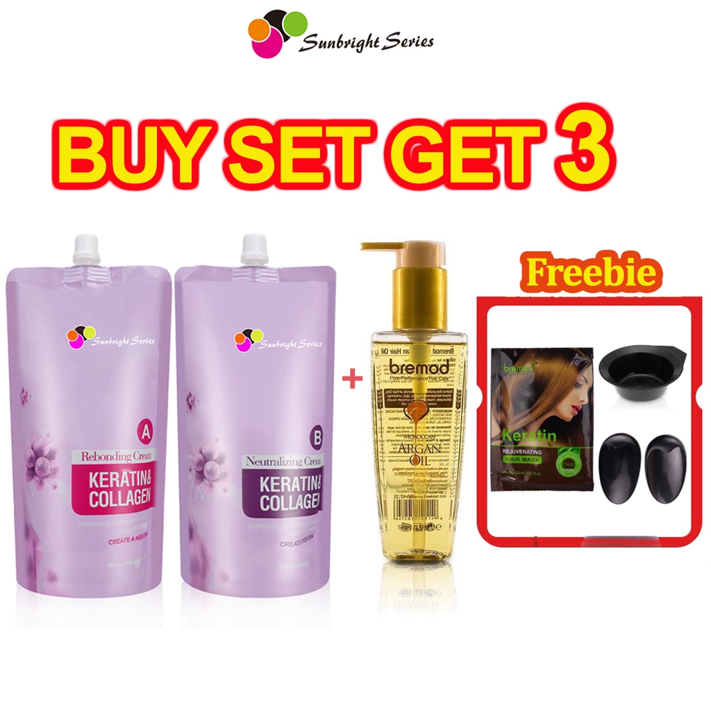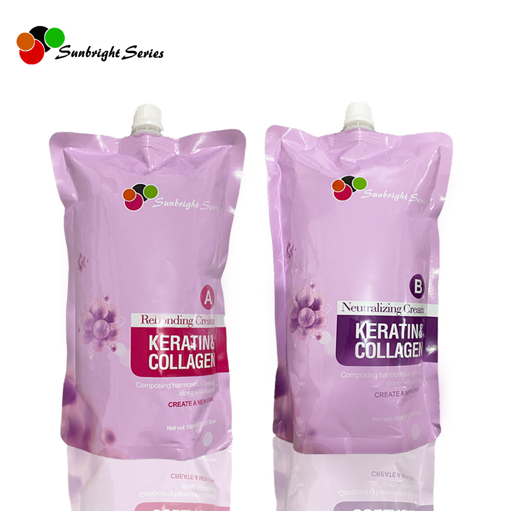 Sunbright Series Rebonding Set Hair Silky Straightening Cream Keratin Collagen Smooth 1000ml