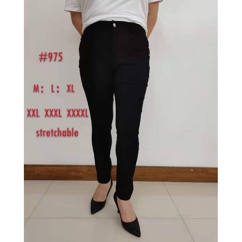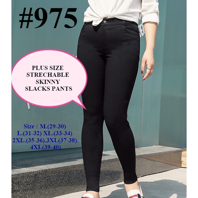 975 (M-4XL) STRECHABLE SKINNY SLACKS PANTS w/4POCKET, & reg.BELT LACE