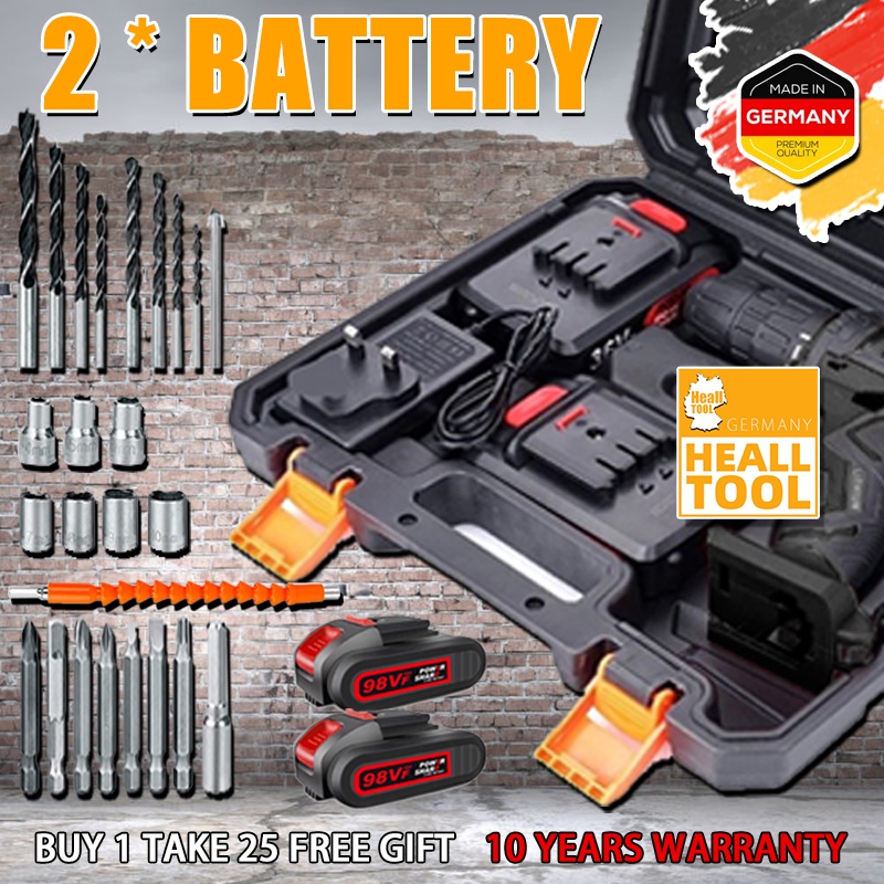 98V 32 pcs 2 Battery set Impact Drill Set Cordless Hand Drill Set Electric Screwdriver Drill bits Battery