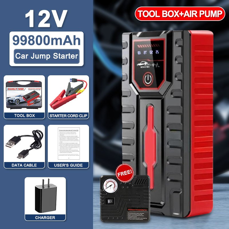 99800mAh Car Power bank High power With Pump Power Bank Car Jump Start Emergency Light