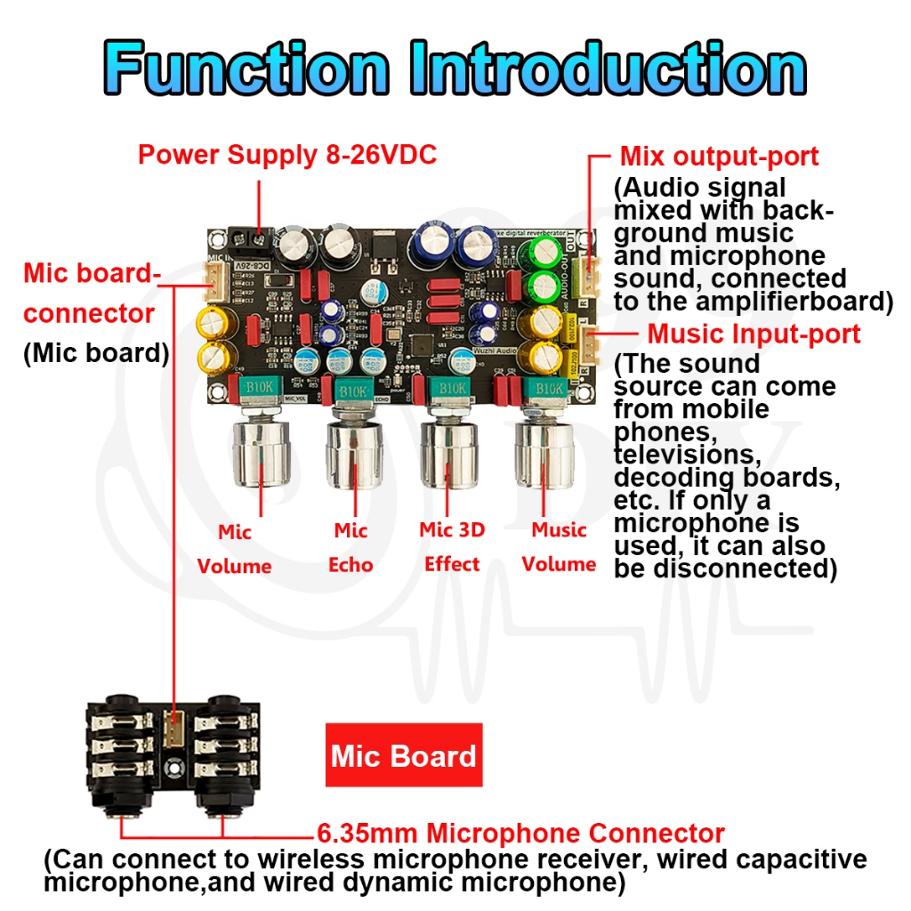 999DIY Wuzhi Audio ZK-AMP Enhanced DSP Mic Preamp Boosts Karaoke Sound Compact Heavy Bass Mini Amp
