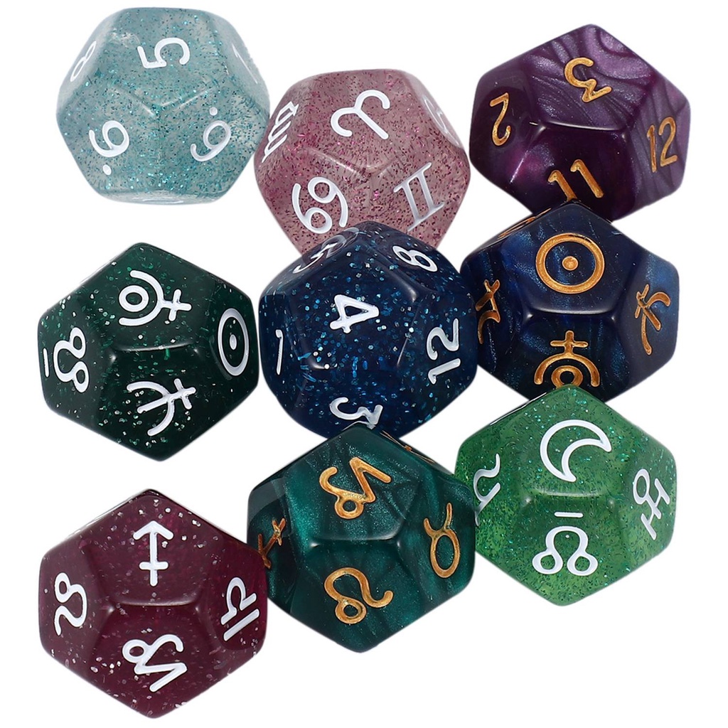 9Pcs Pearl 12-Sided Astrology Zodiac Signs Dice for Constellation Divination Toys Creative Multi Sided Dice Type A