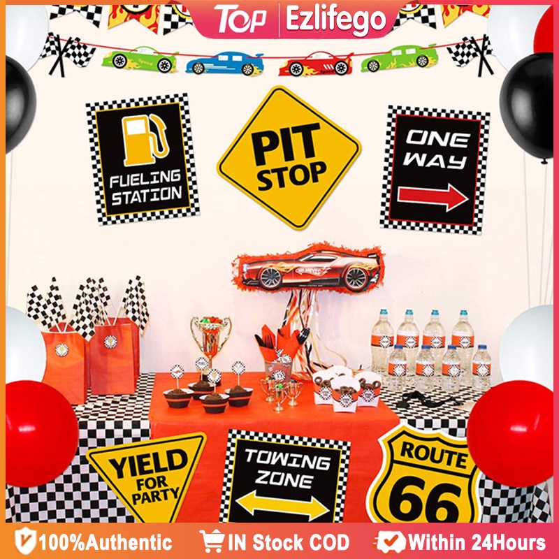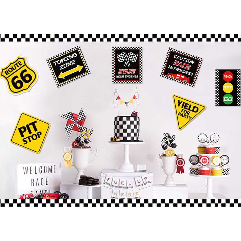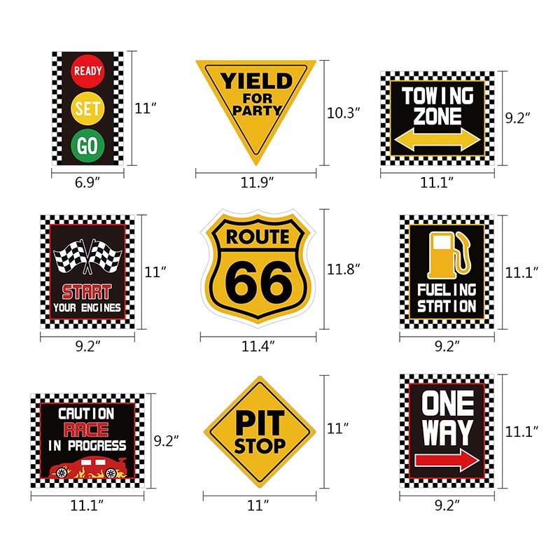 9Pcs Race Car Party Decorations Supplies Set Race Traffic Signs Decorations
