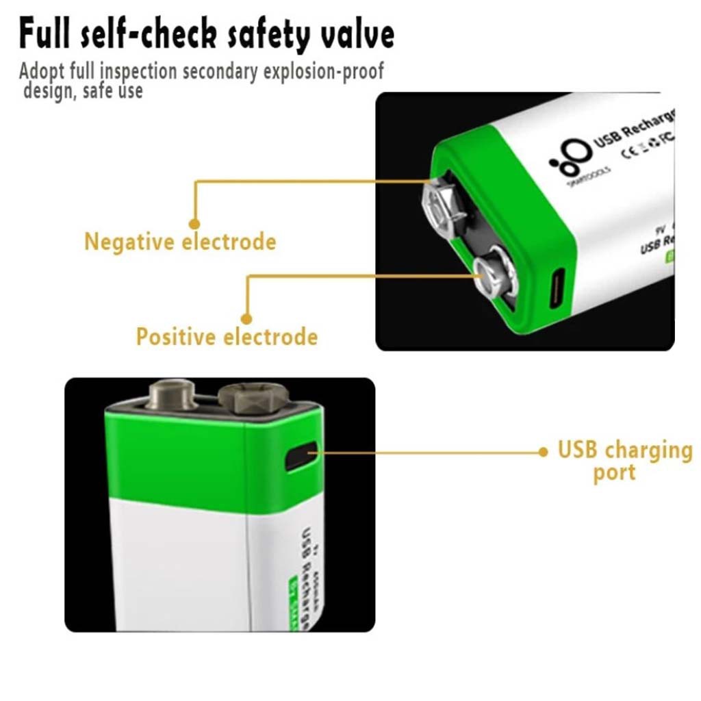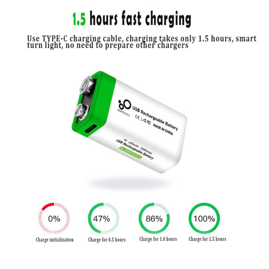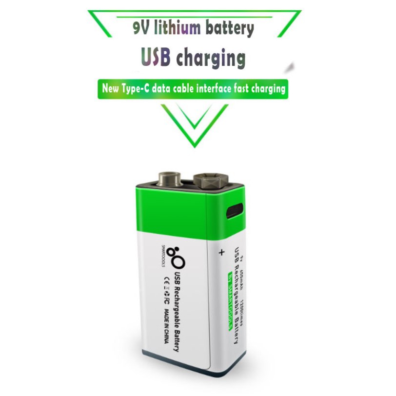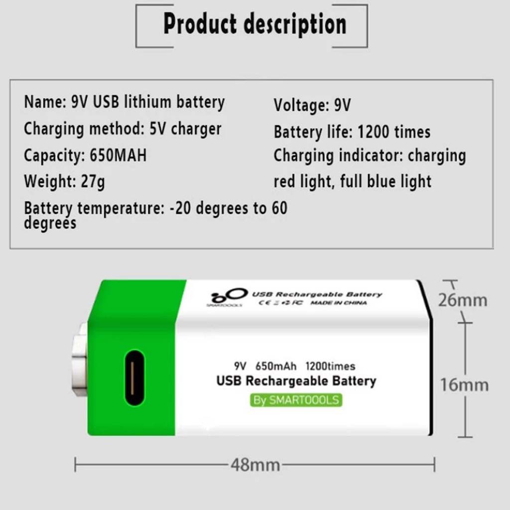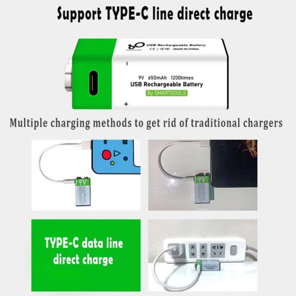 9V 650mAh 1200 times Li-ion Type-C Rechargeable Batteries 9 Volt USB Charging Battery 9VST