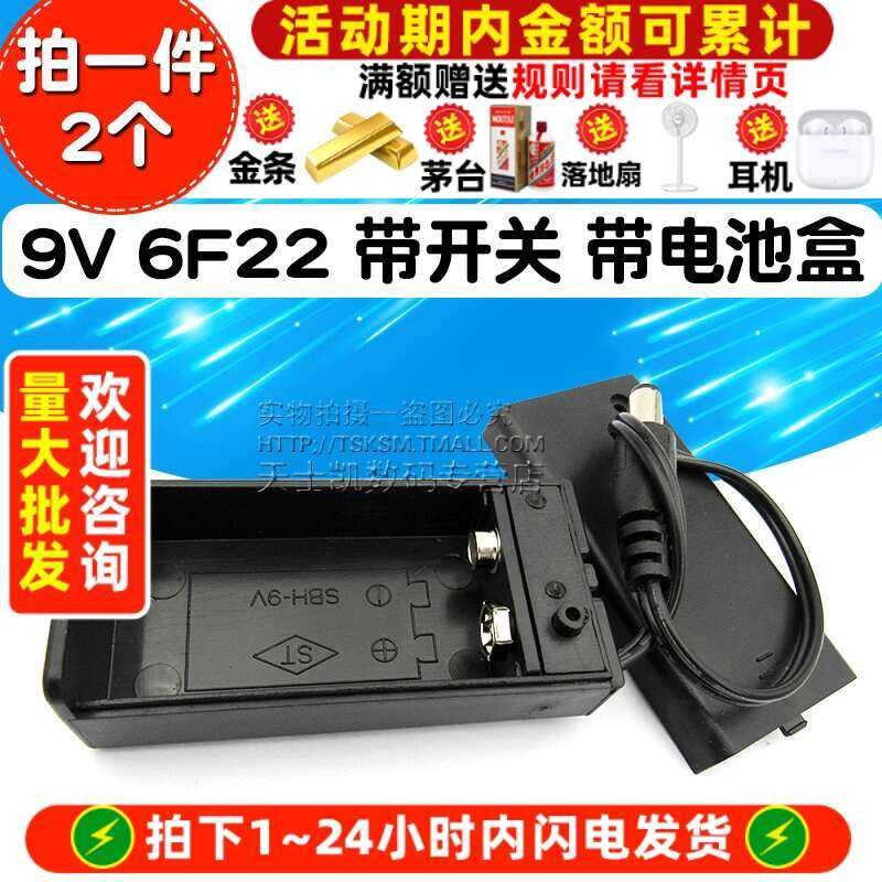 9V 6F22 Cover Switch Box Battery Holder with DC 2.1*5.5 Male Head (2 Pieces)