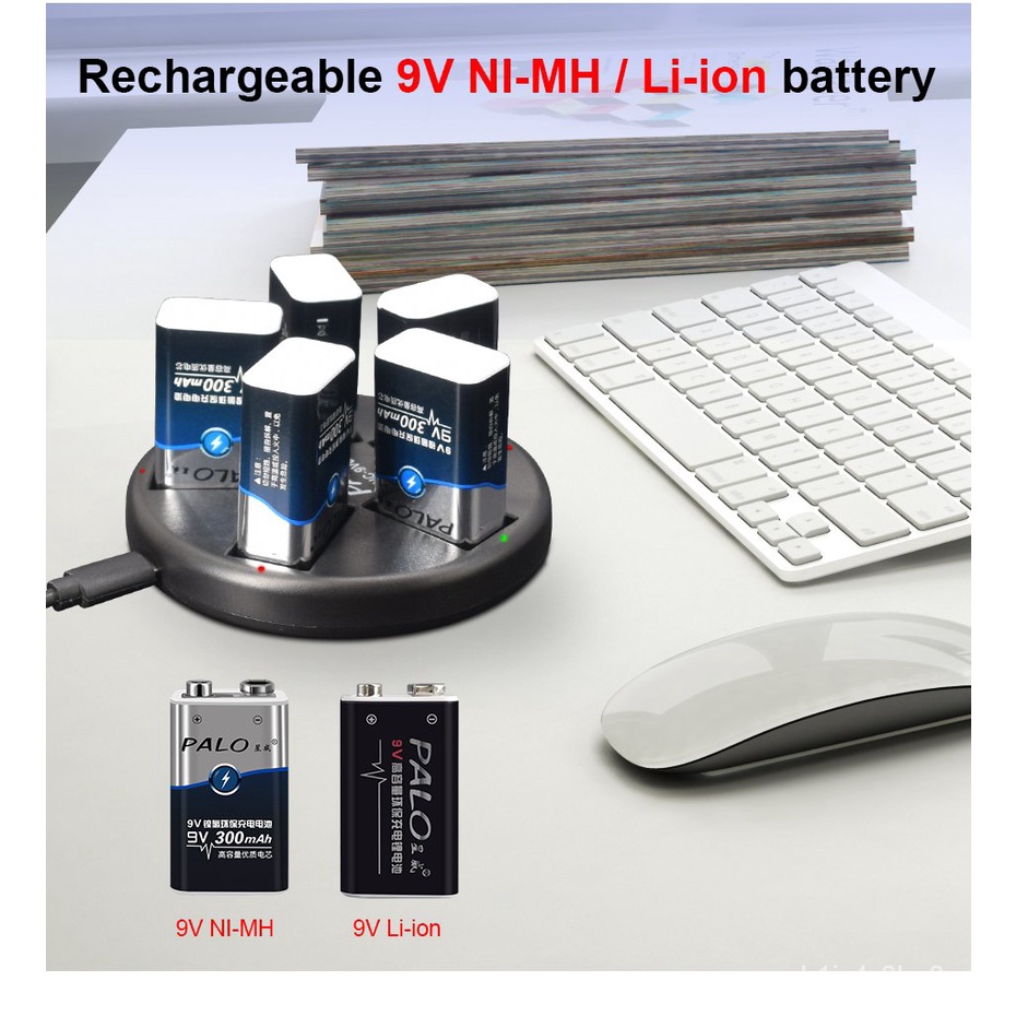 9V 6F22 Smart Usb 9 Volt Rechargeable Battery Charger for 9V Nimh Nicd Ni-Mh Ni-Cd Lithium Li-ion Li