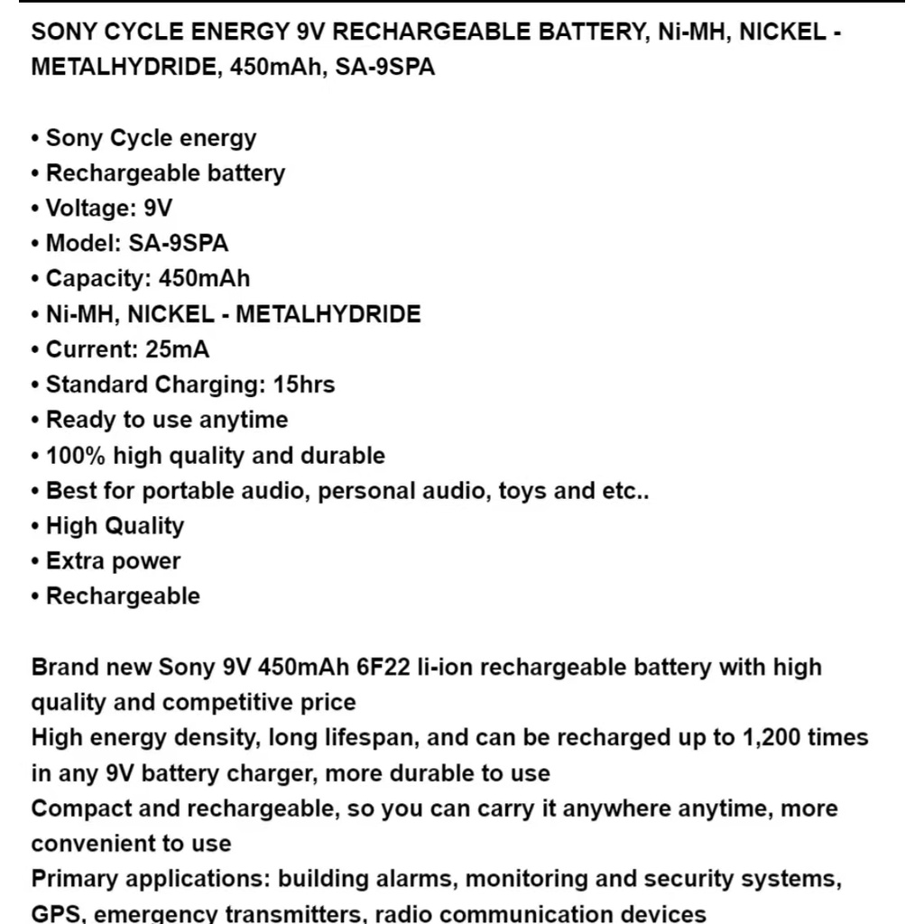 9V Long Life Carbon and Zinc Batteries, 9V Rechargeable Battery Cyclic energy battery bdor ph