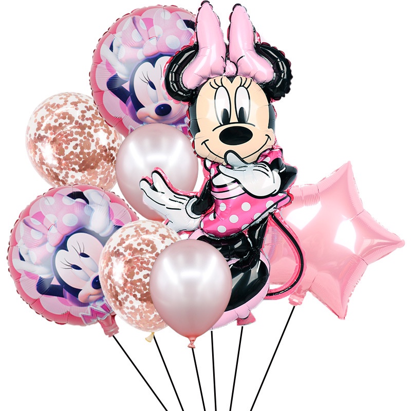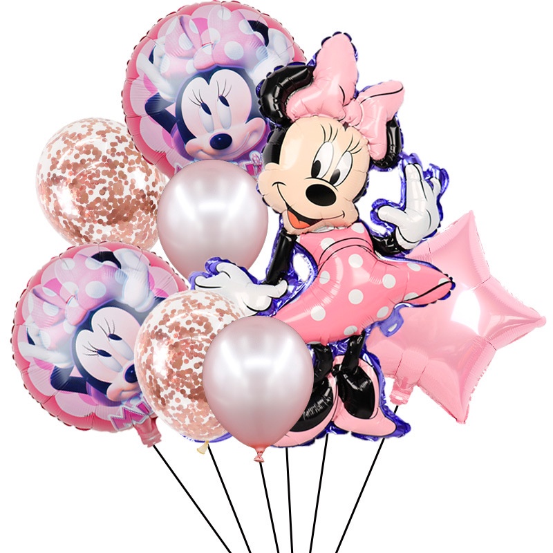 9pcs Mickey Mouse Theme Balloons Set Cartoon Standing Mickey Minnie Aluminum Foil Balloon Latex Balloon Set Party Needs
