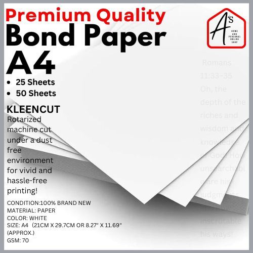 A's A4 TYPEWRITING PAPER (25sheets/ 50sheets) - Premium Quality Bond Paper White Short Size 70Gsm