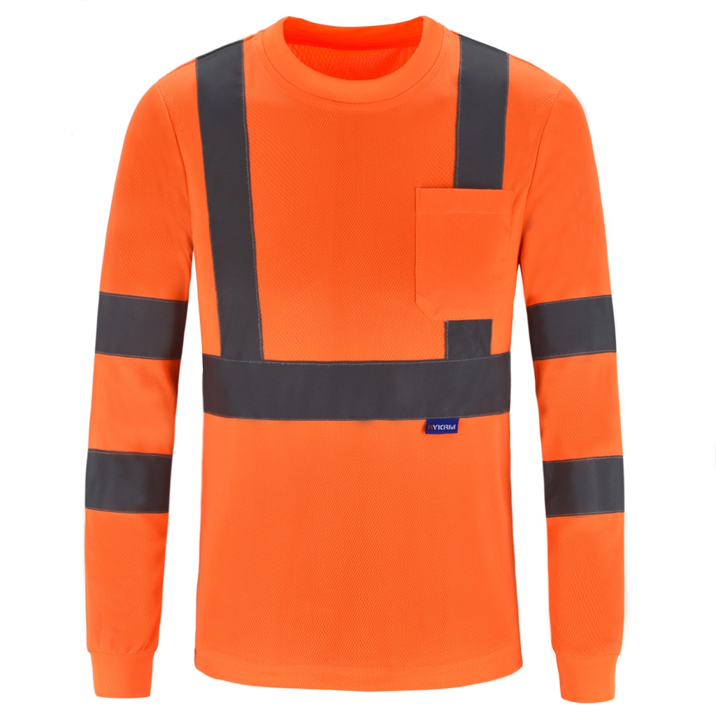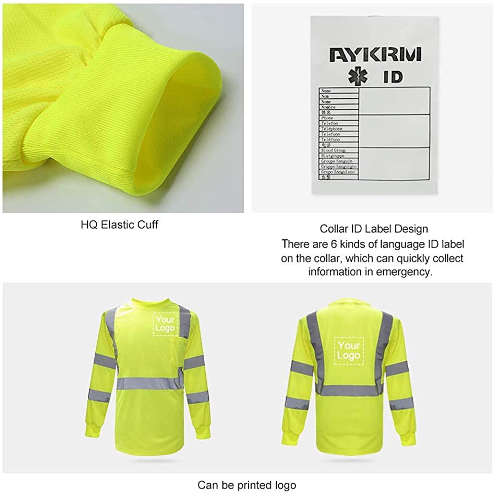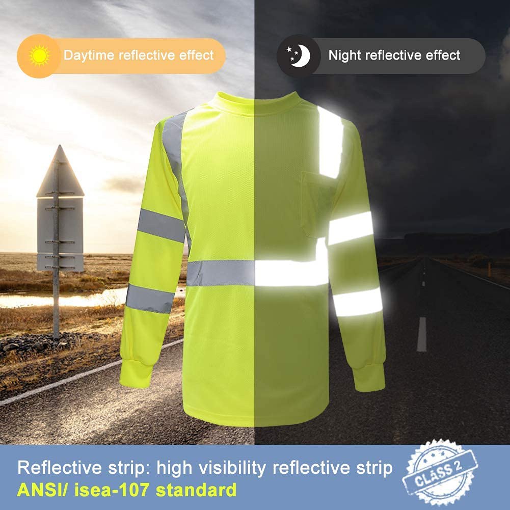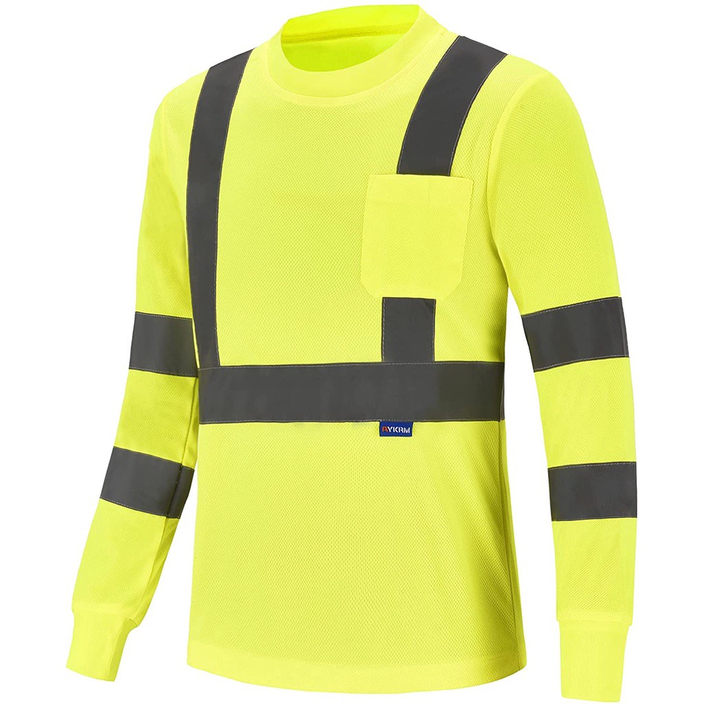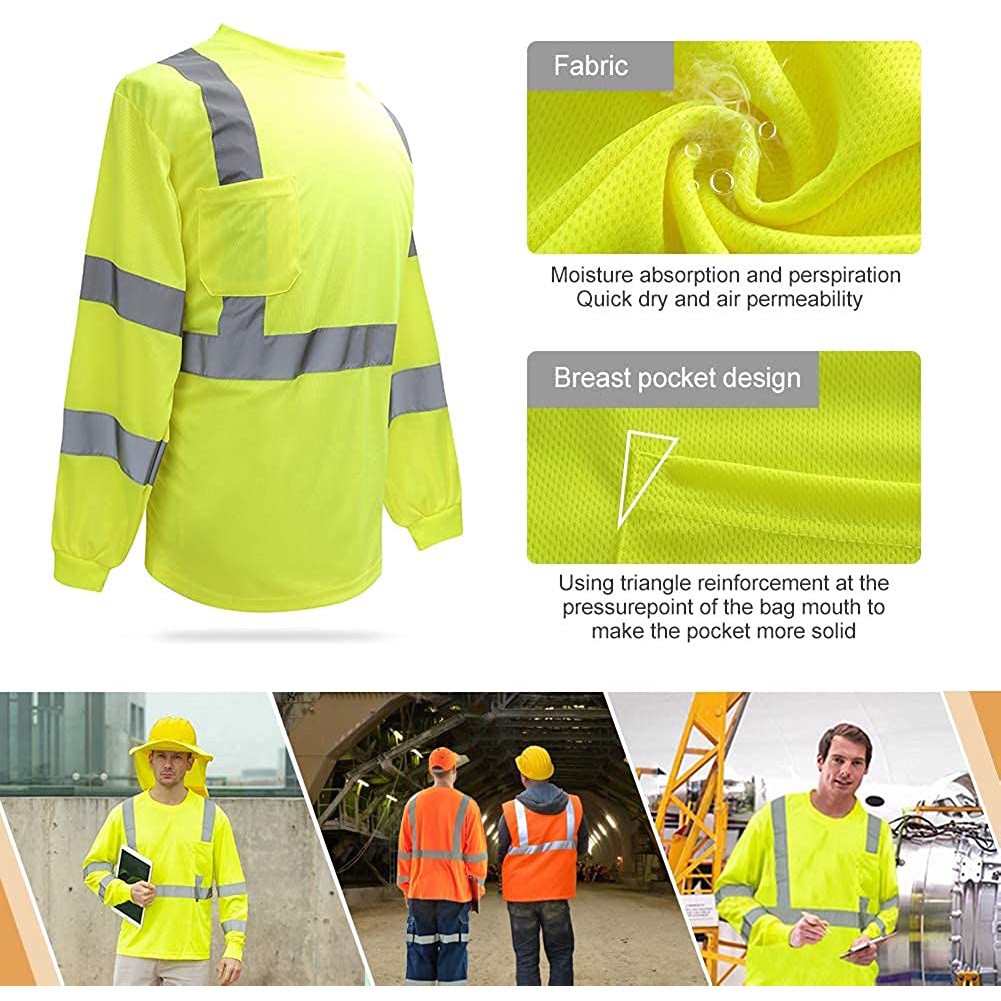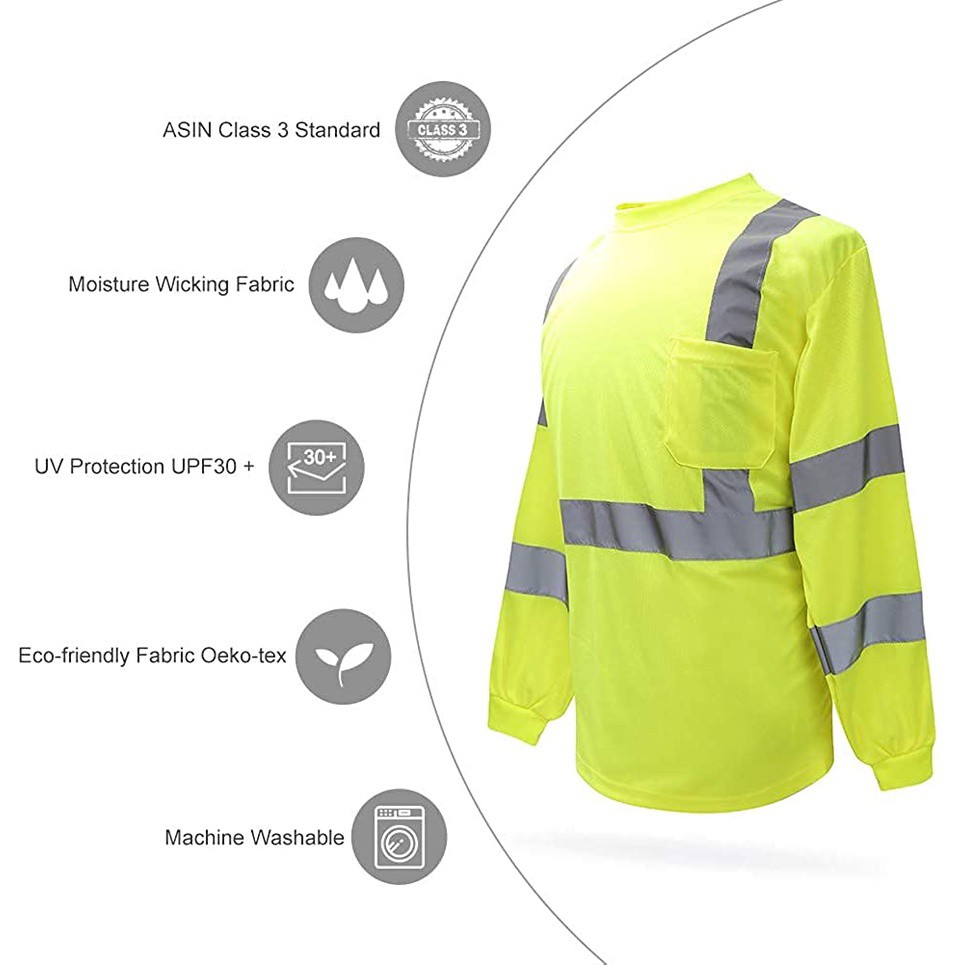 A-SAFETY long sleeve high visibility shirts Work Shirt Safety, Cool Dri Performance Mens High Visibility Force Long Sleeve Class 3 Tee