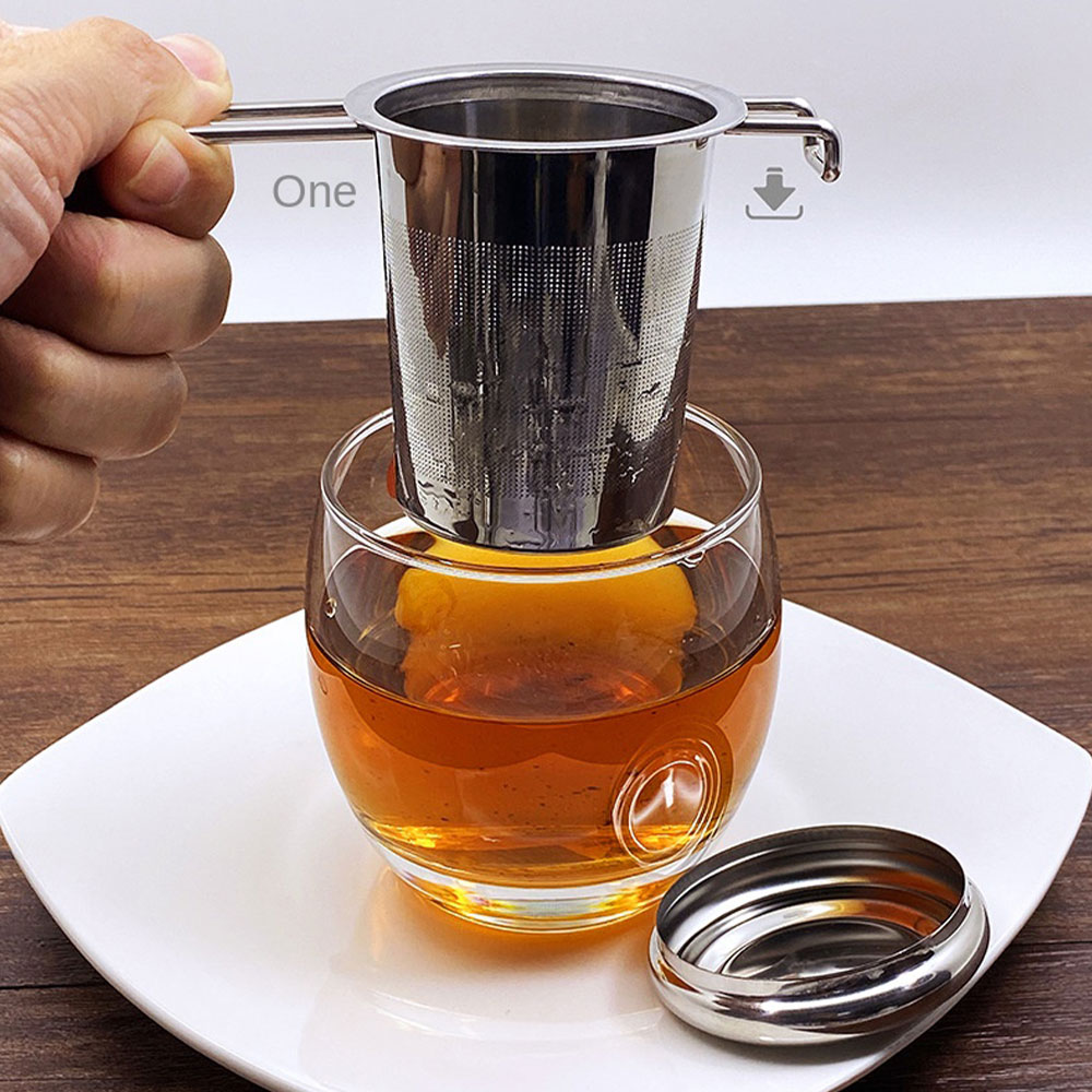 A set Stainless Steel Mesh Tea Infuser with Lid Reusable Cup Strainer Loose Leaf Spice Filter for Teapots Mugs Cup