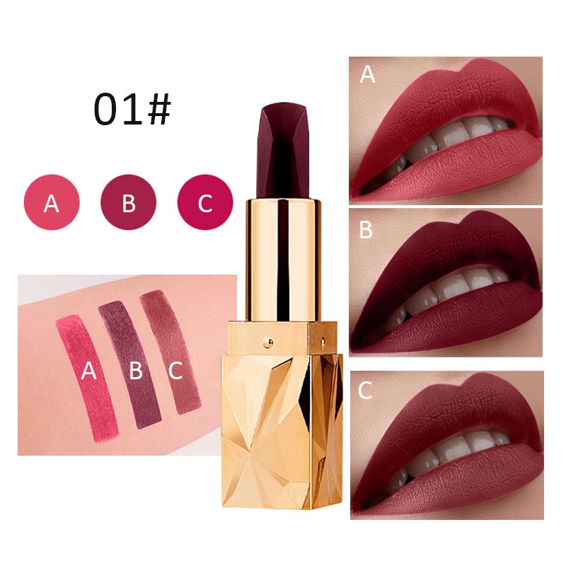 A tri-color lipstick is not easy to stick to the cup Three-sided color-changing black lipstick is bright and colorful 6 colors