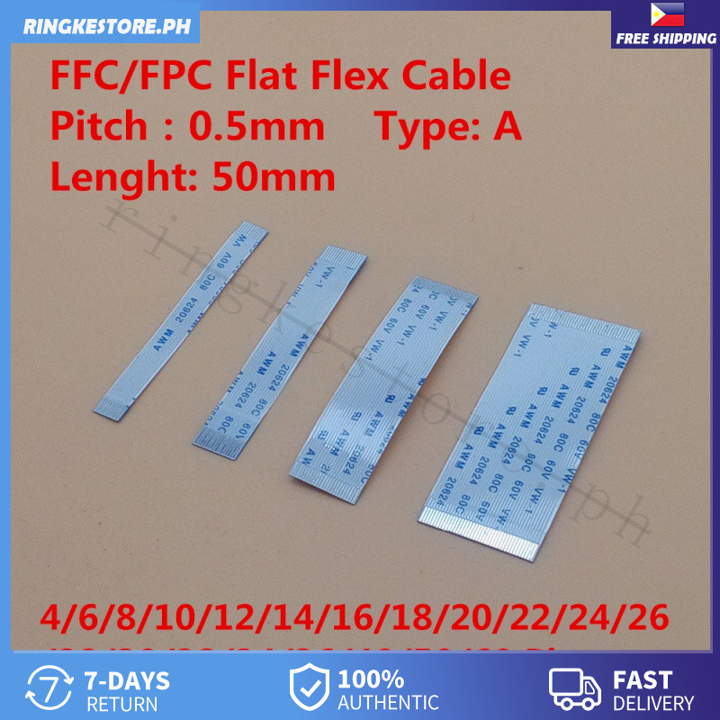 A type Same Side 0.5mm Pitch FFC/FPC Flat Flex Cable 5cm 4/6/8/10/12/14/16/18/20/22/24/26/28-60Pin AWM VW-1 20624 20798 80C 60V