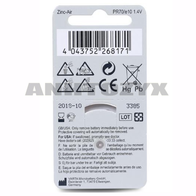 A10 Hearing Aid Battery for Invisible Hearing Aid (6s/pack)