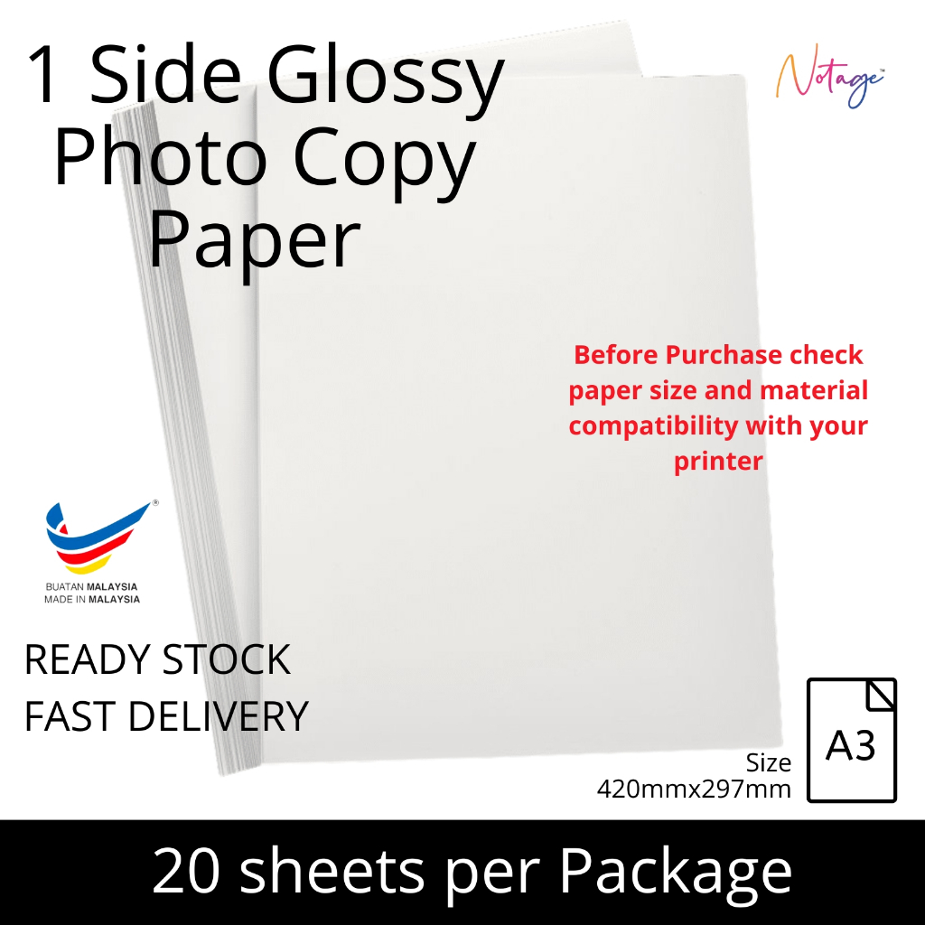 A3 / A4 Glossy Photo Paper - 20 Sheets for Inkjet Printer