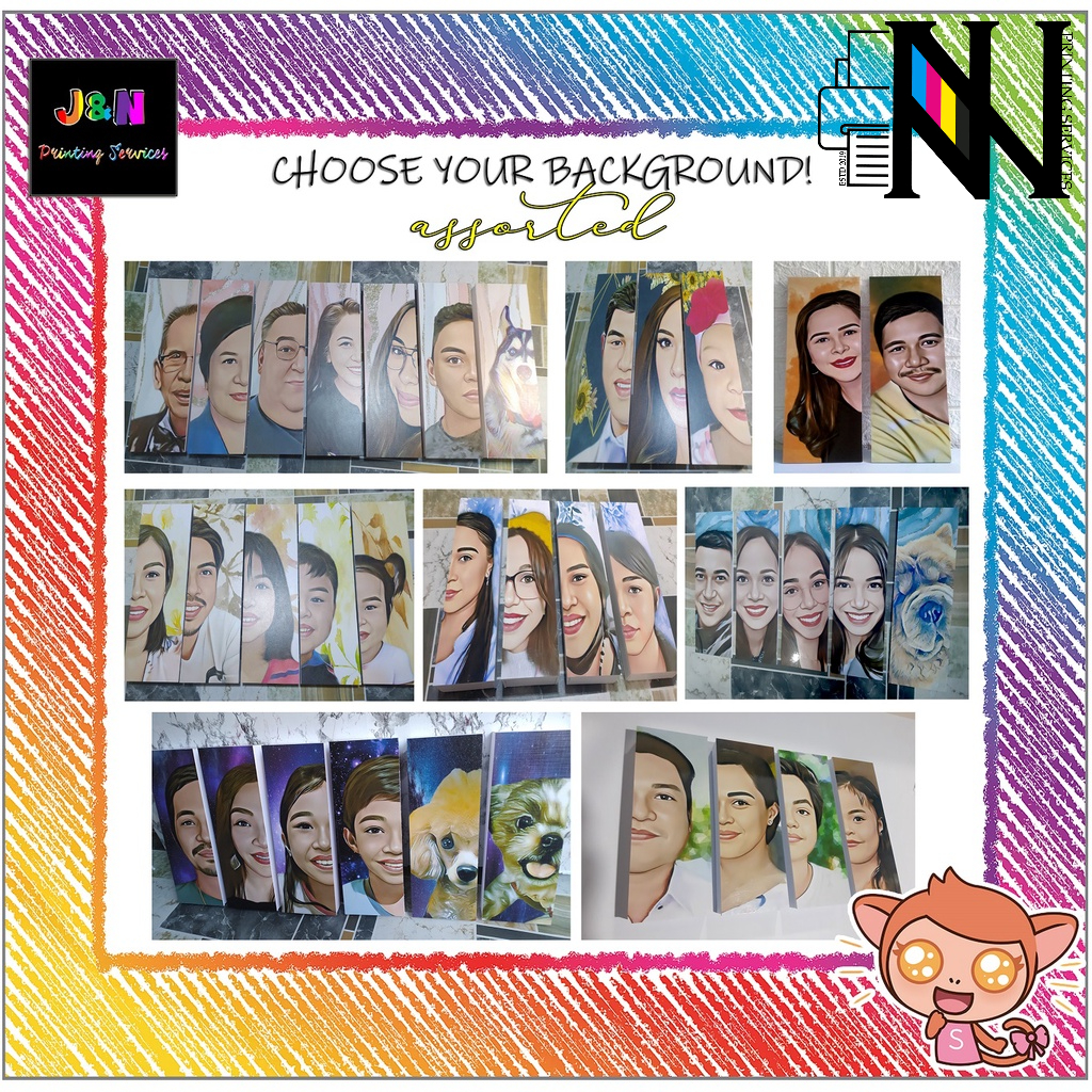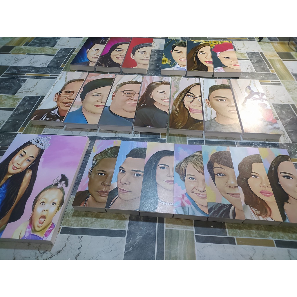 A3 Half Panel Set of Cartoonize Half Face Family Portrait Sintra Board Wall Decoration