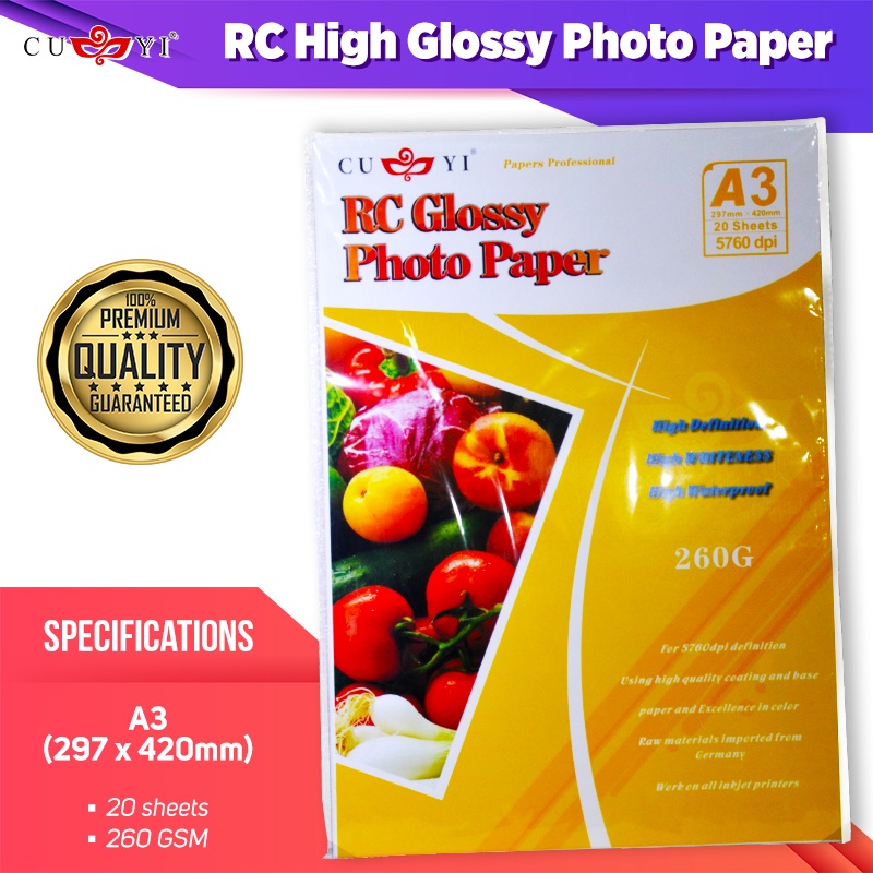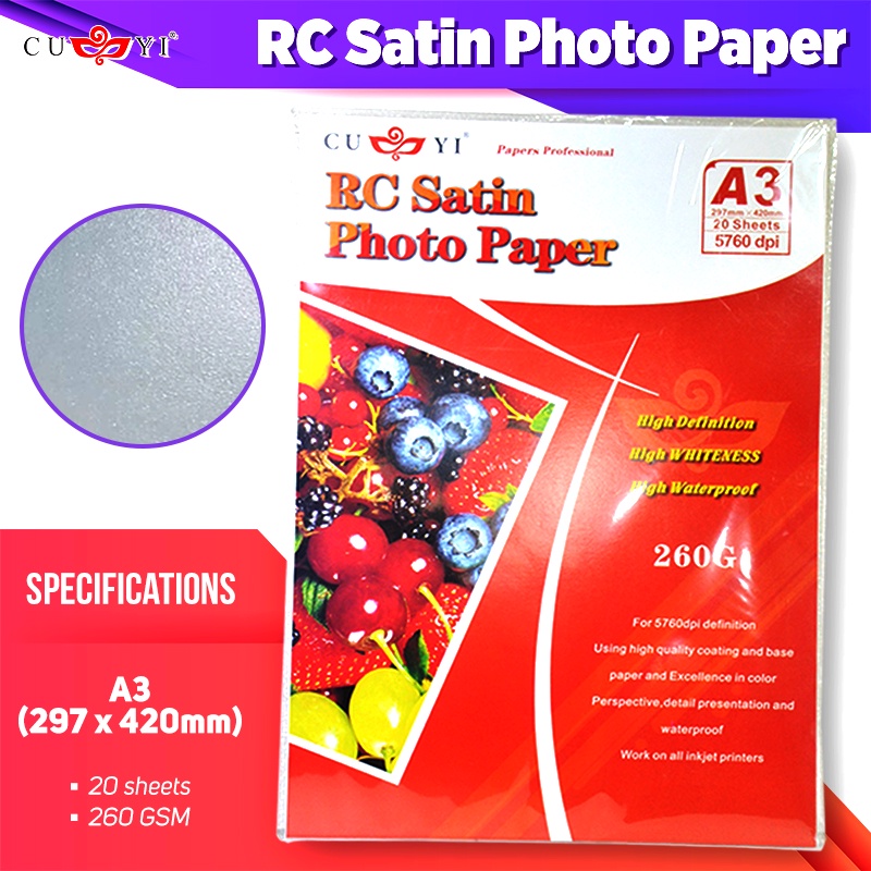 A3 Size Photo Paper CUYI & QUAFF || RC Satin , RC High Glossy , Tree Type Glossy Inkjet Photo Paper