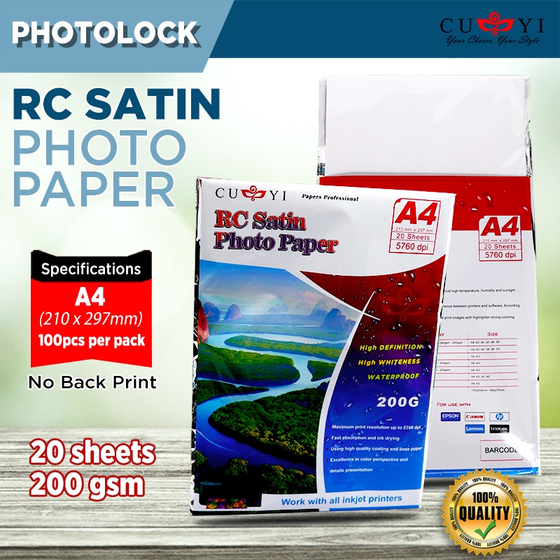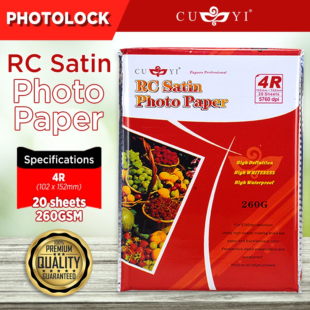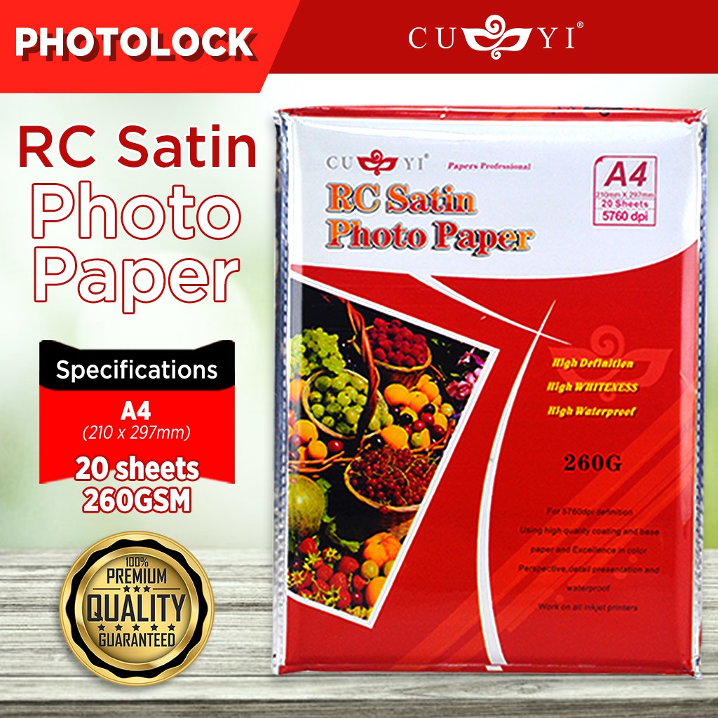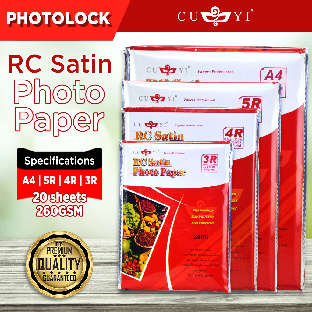 A4 / 5R / 4R / 3R Size CUYI RC Satin Photo Paper , Resin Coated Inkjet Photo Paper 260gsm for Photos