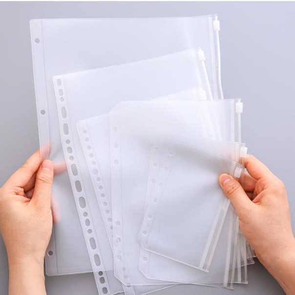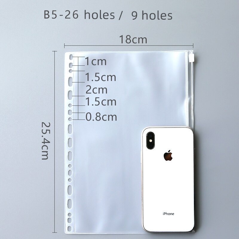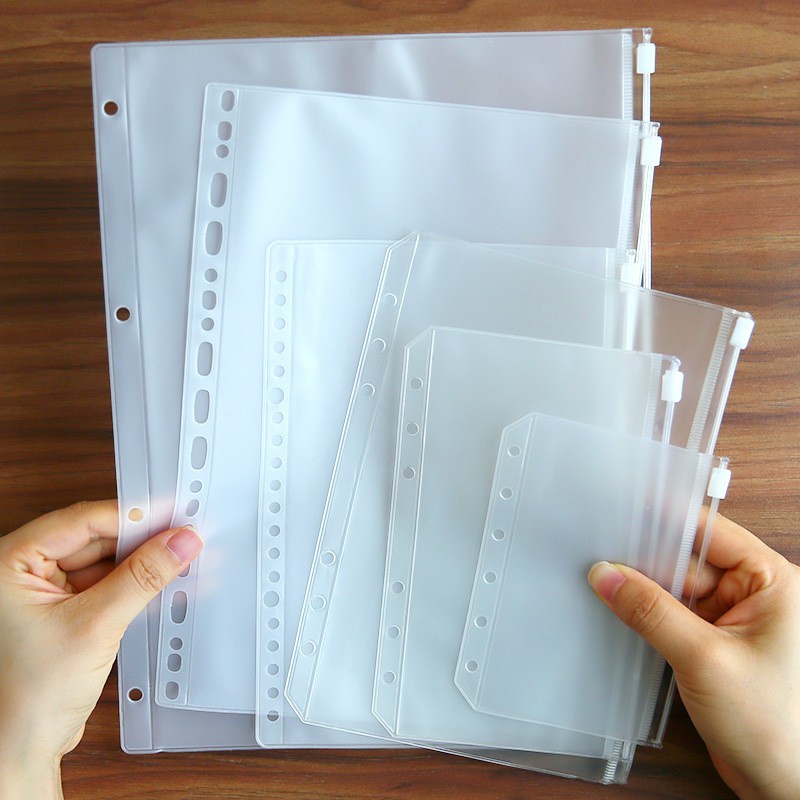 A4/A5/A6/A7/B5 Loose-Leaf Zipper Bag 4/6/20/26 Holes Waterproof File Storage Bag PVC Transparent Punch Zipper