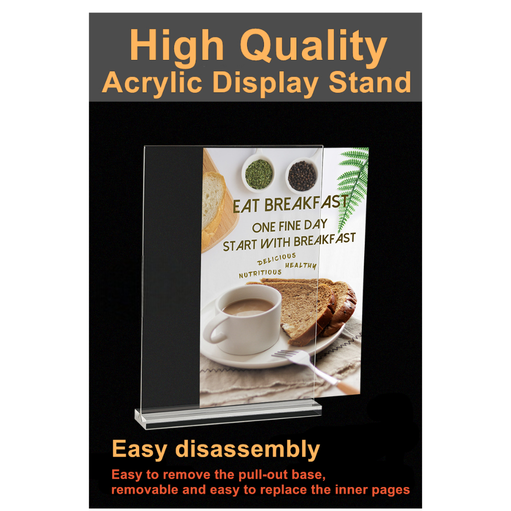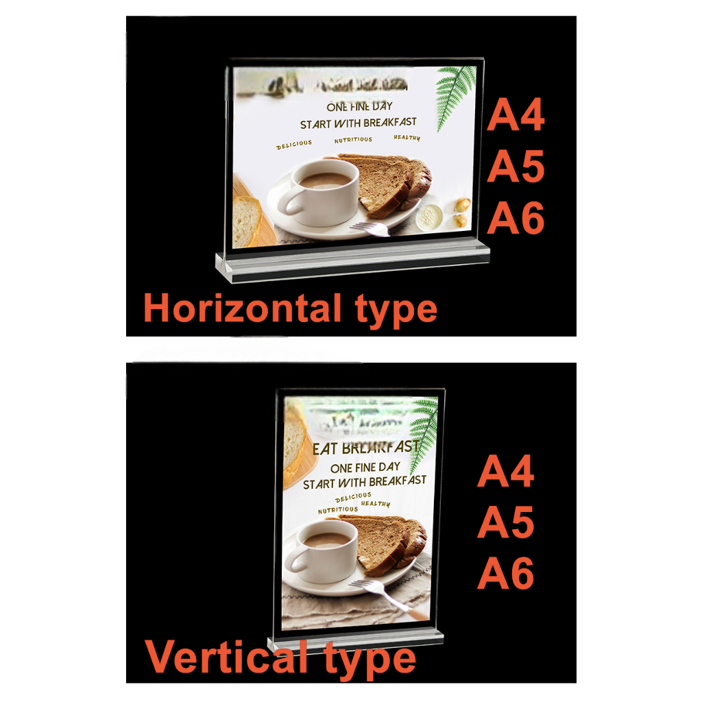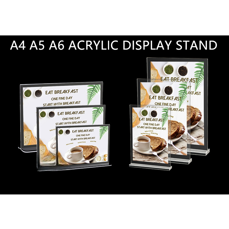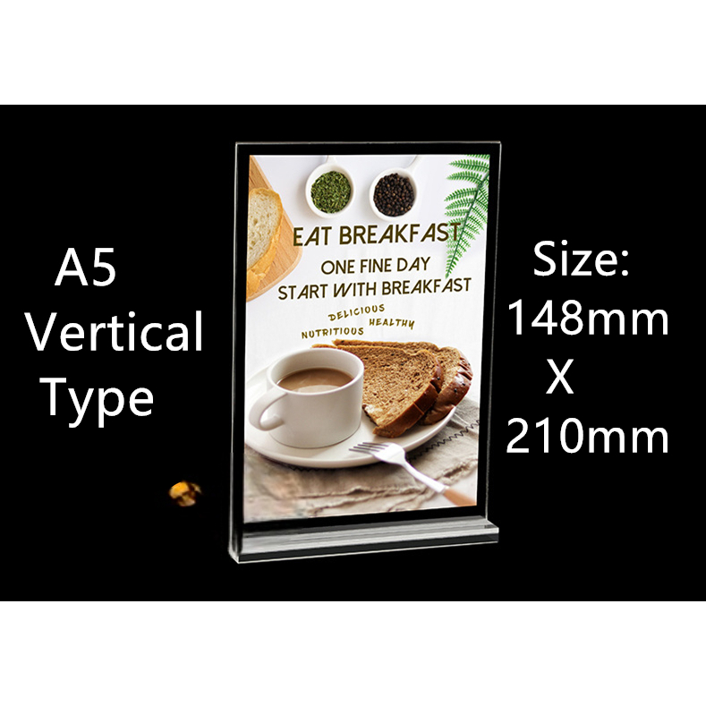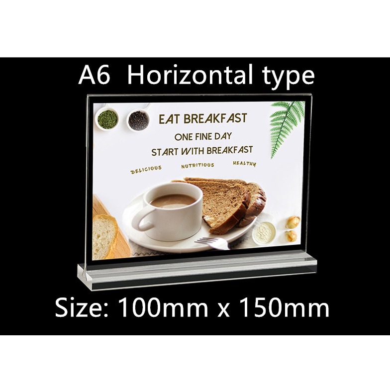 A4 A5 A6 Acrylic Menu Display Stand Double Side Clear Desk Display T-type Menu Ad Frame Photo Holder