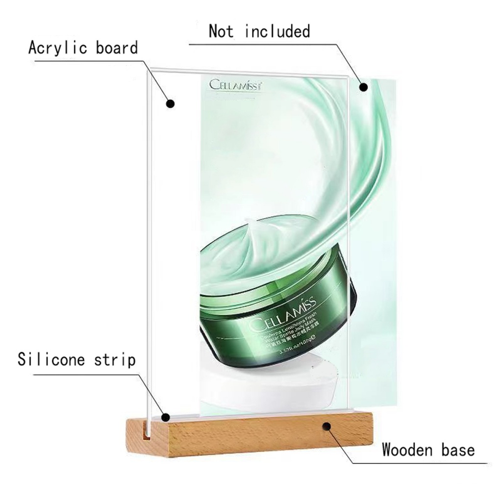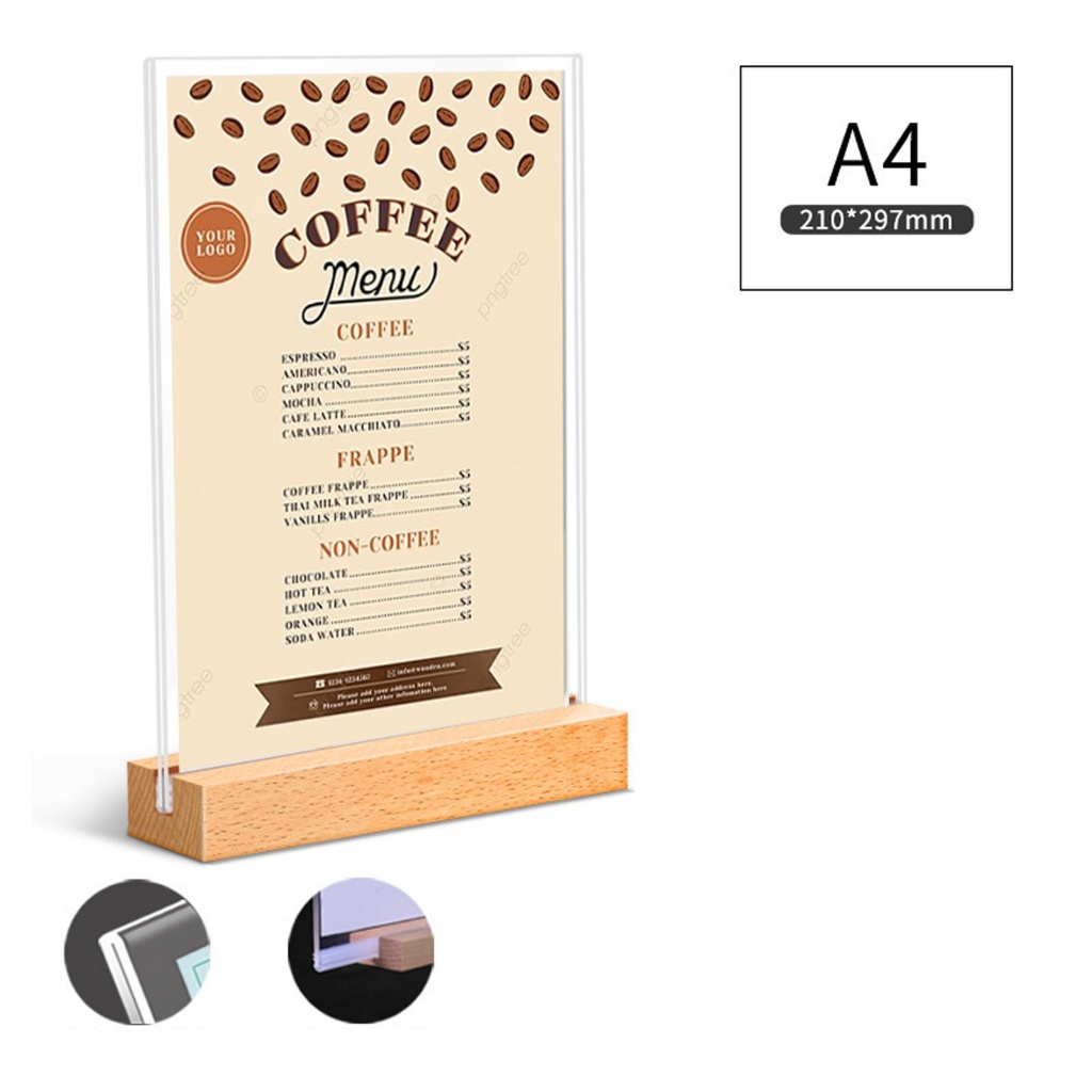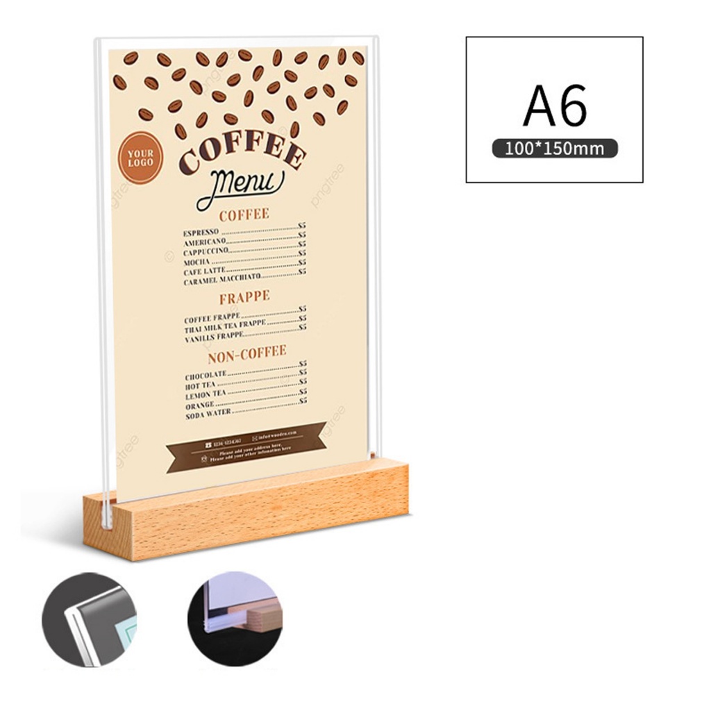 A4/A5/A6 Menu Display Stand with Wooden Base Clear AD Poster Frame Price Card Holder