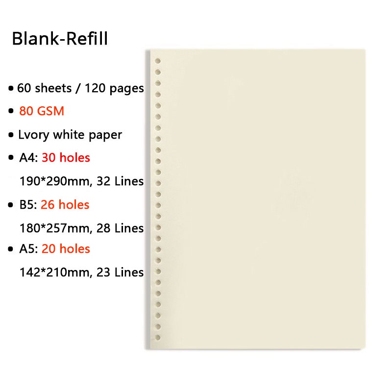 A4/A5/B5 Binder Coil Notebook Detachable Metal Buckle Horizontal Line Blank Cornell Grid Four Refills School Study Notebook Binder Coil Notebook DetachaOffice Planner Birthday Gift