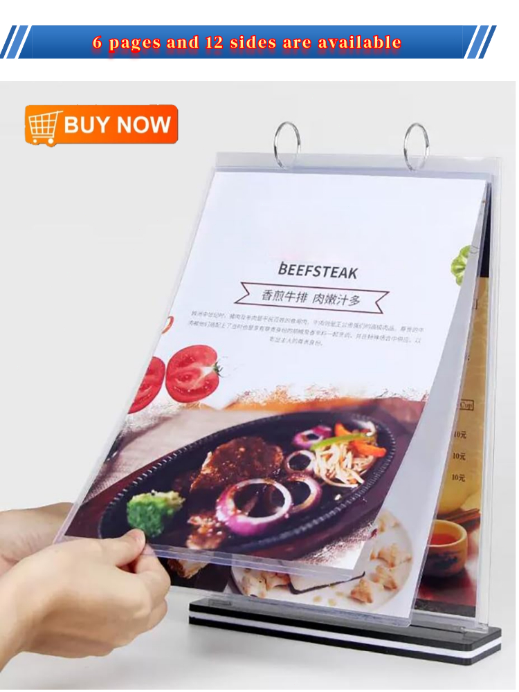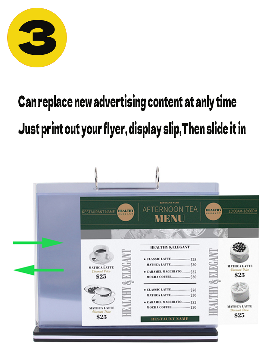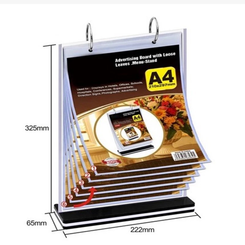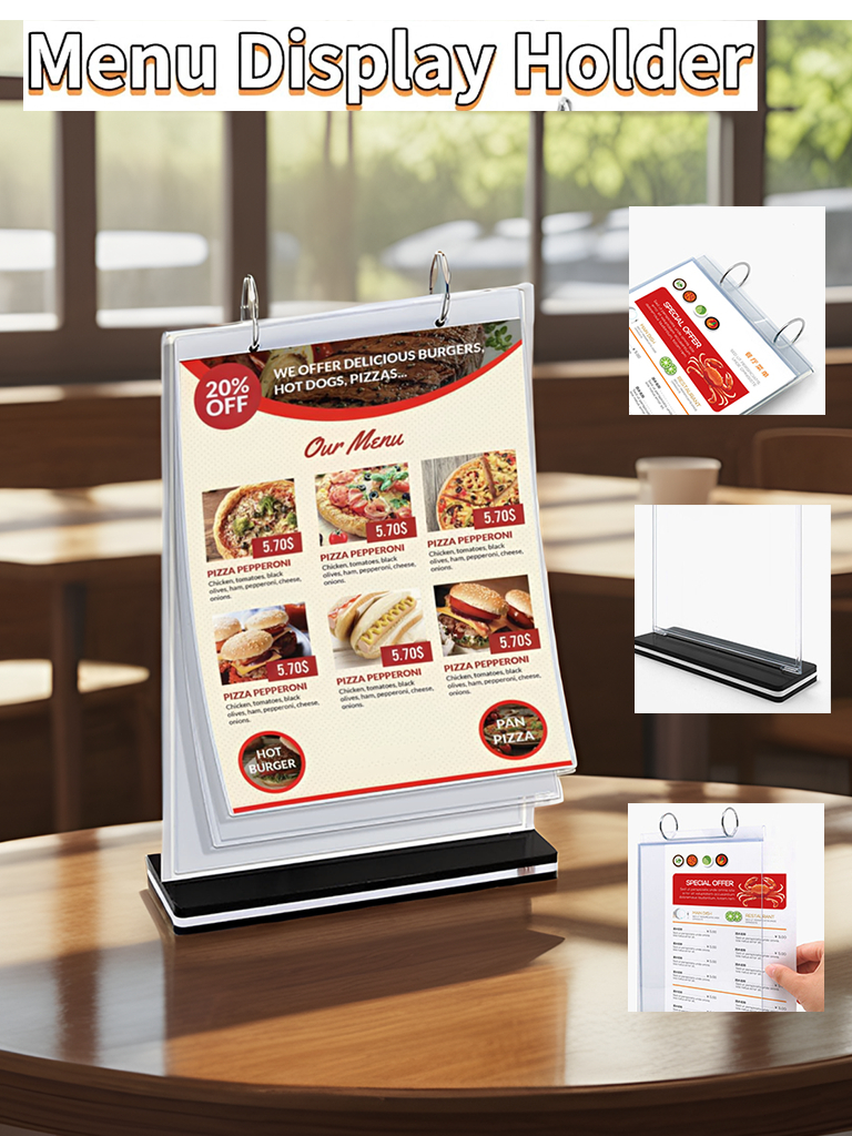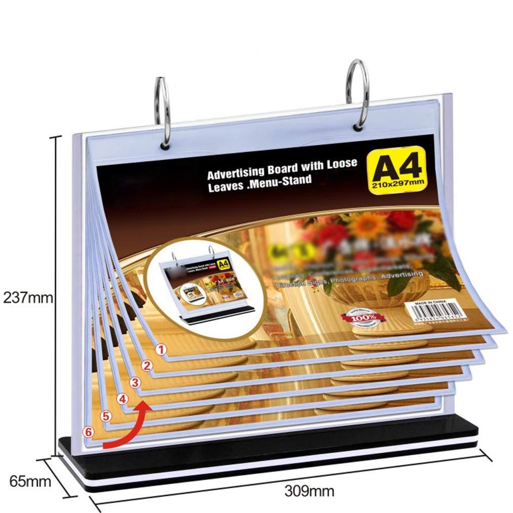 A4 A5 Flip Acrylic Restaurant Menu Stand Ring Binder Display Holder Permit Label Shop Promos